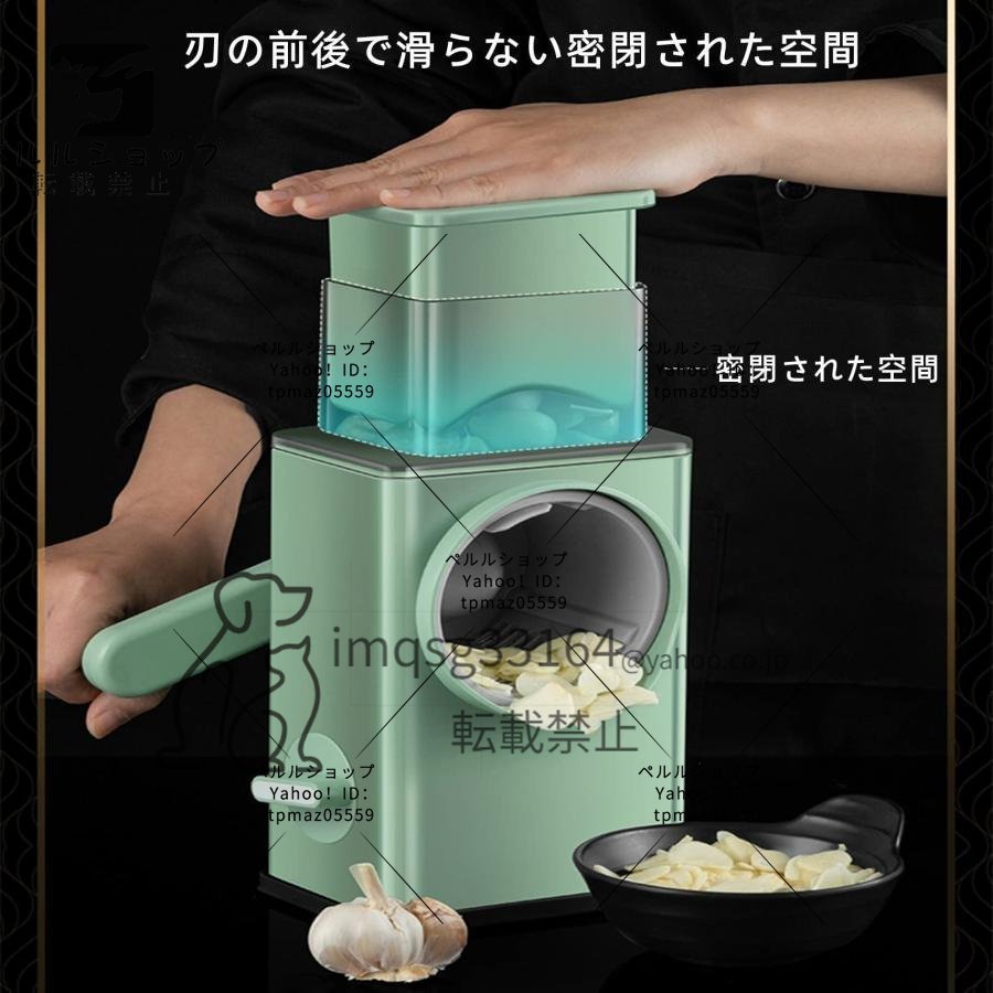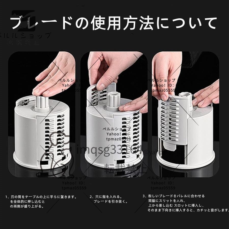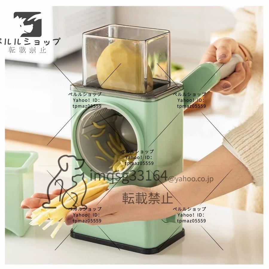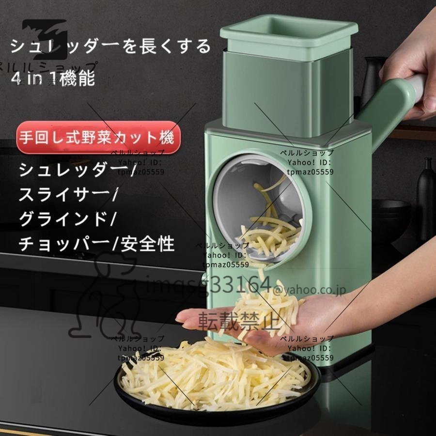 野菜スライサー 多機能千切りスライサー、電源不要回転式 手回し式 キッチン用品 3種類ブレード付属 手動 千切り 3個刃 スピーディ フルーツチーズナット カッタ