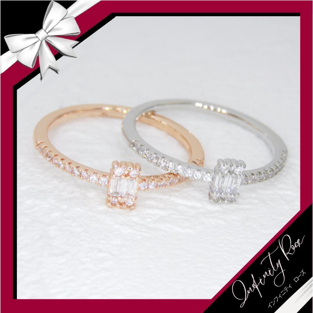 大人の女性らしい細身のデザイン。スクエアのクリスタルリング。
