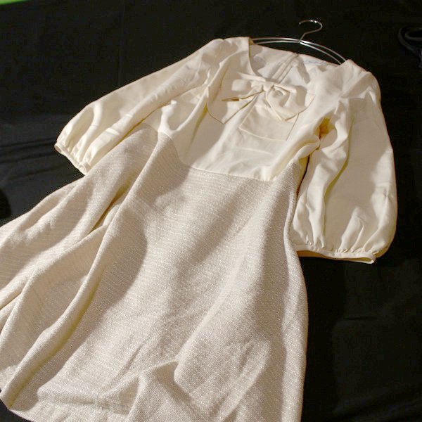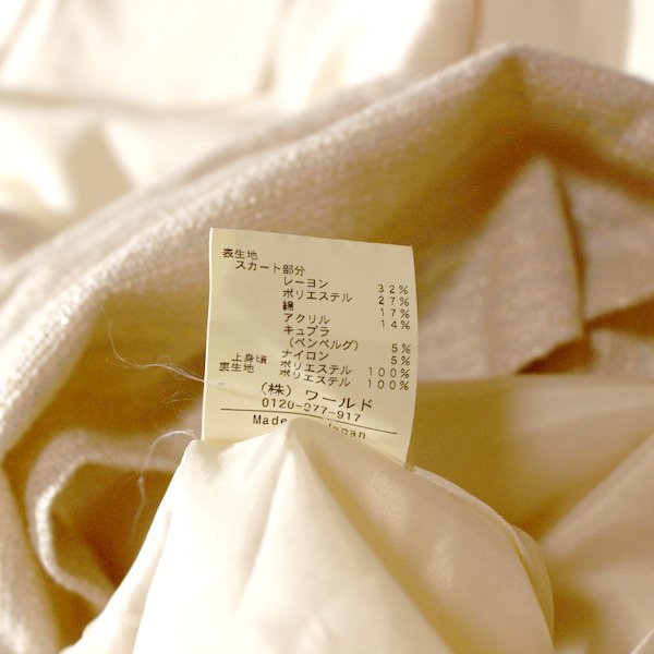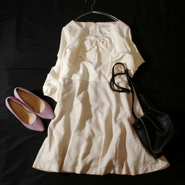 美品 (株)ワールド anatelier アナトリエ 大人可愛い 異素材切り替え ライトツイード ワンピース 38号 M 春 合服 24A03