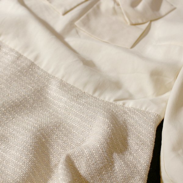 さらっとしたポリエステル生地とライトツイードのドッキングワンピースです。