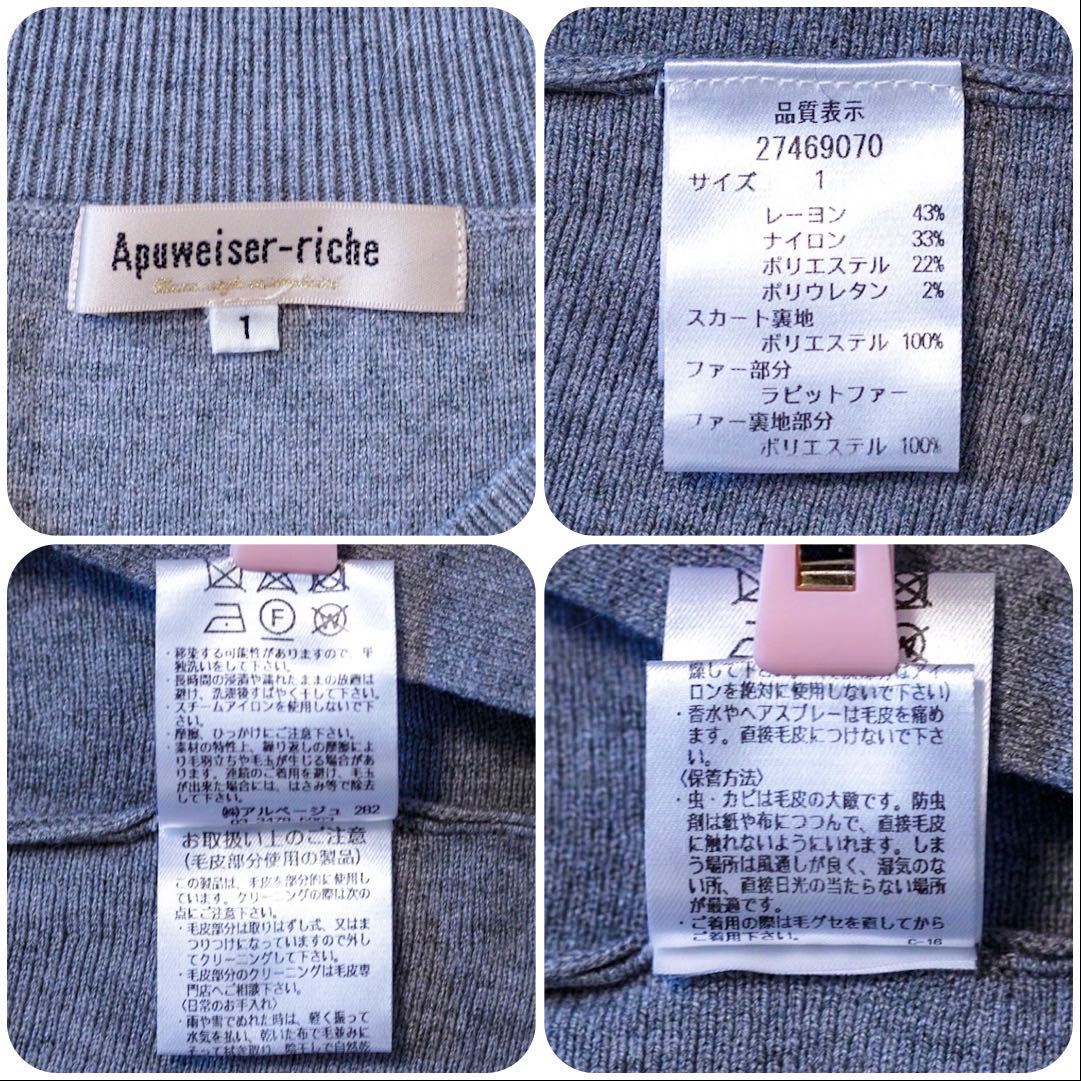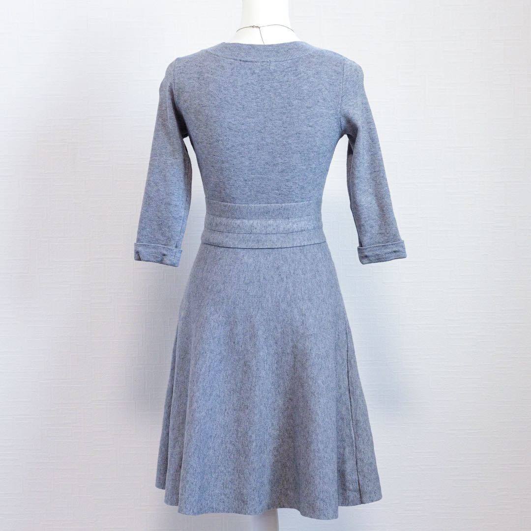【最終値下げ☆美品☆】Apuweiser-riche(アプワイザーリッシェ)Vネック Aラインフレアワンピース グレー リボンベルト M