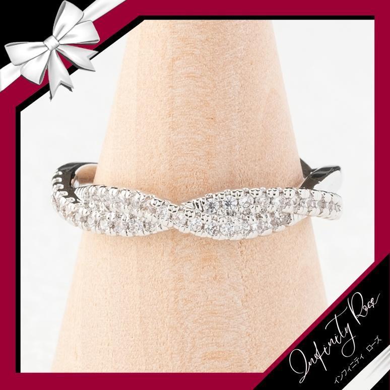 (R035S)16号 豪華ツイスト煌めく無数のクリスタル爪留めリング 指輪