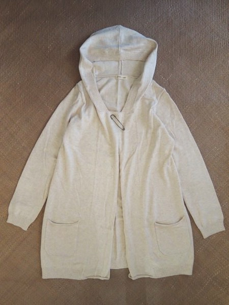 フード付きチュニック丈アウター ニットカーディガン 羽織です。