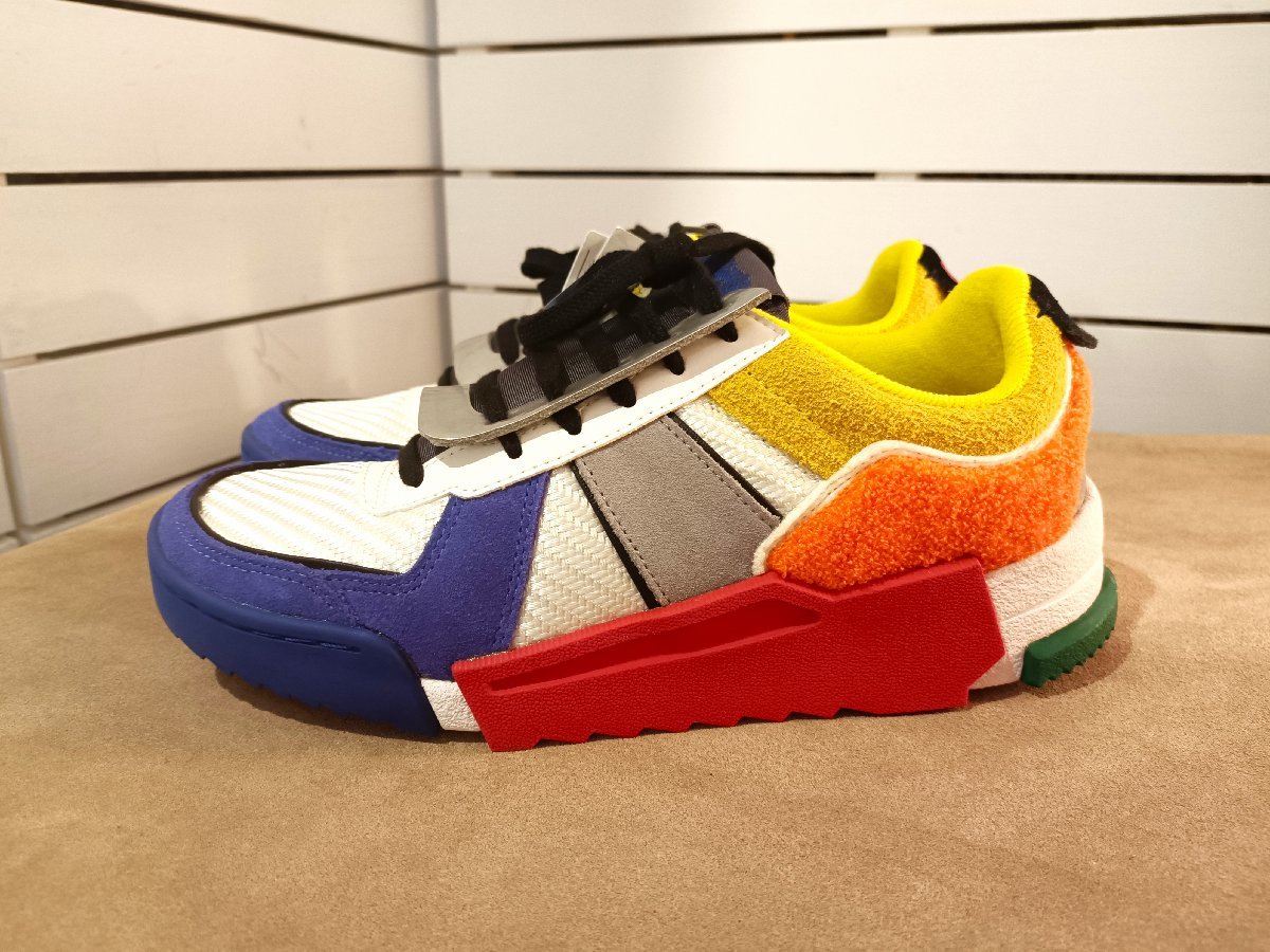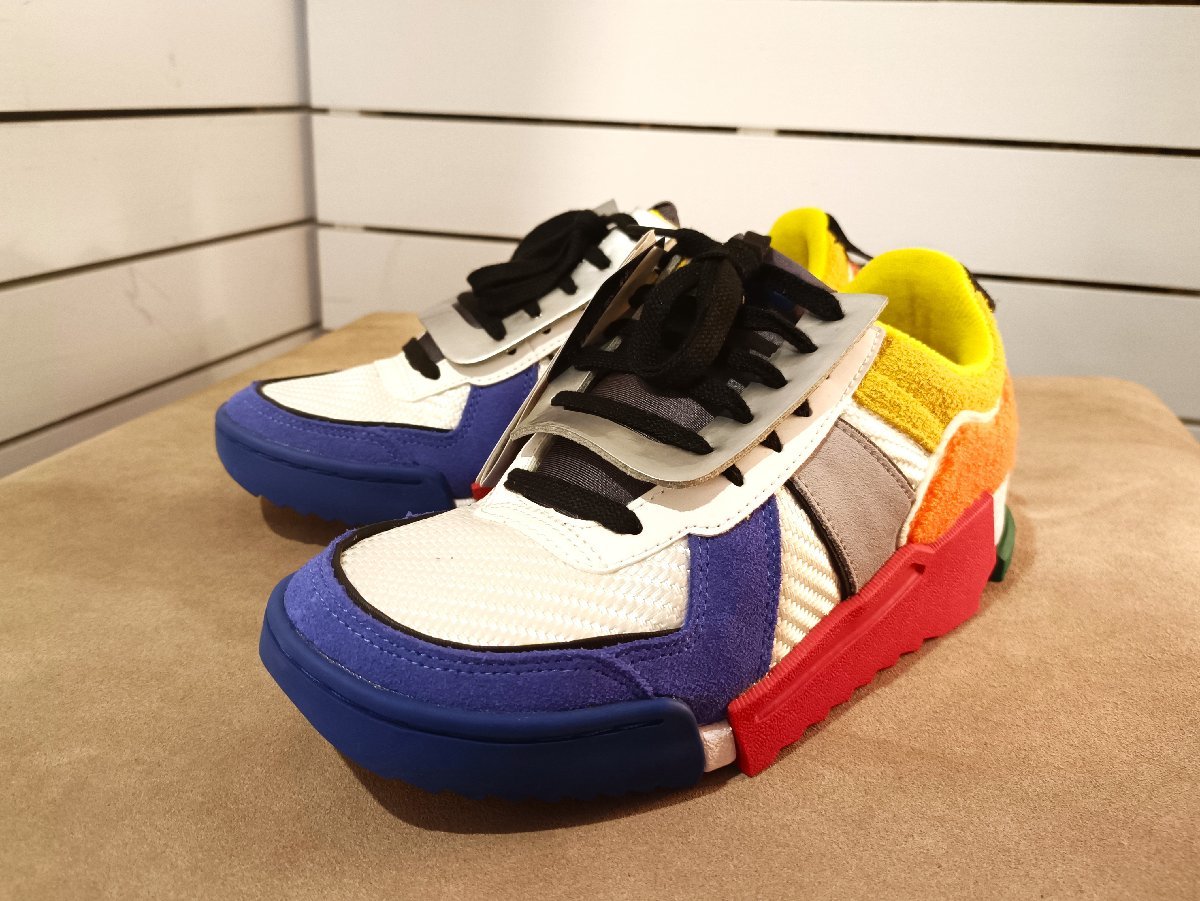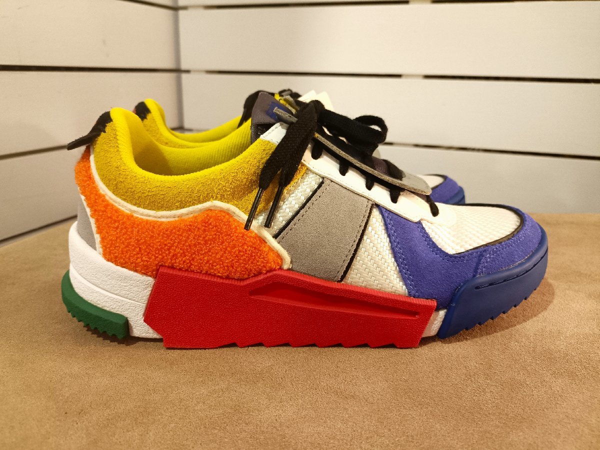遊び心満載な原色の色使いが特徴的な一足となっております。