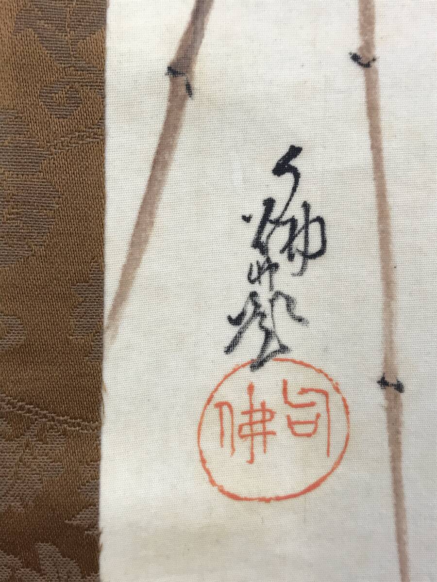 真宗大谷派管長。俳人。本名、光演。俳誌「懸葵」を主宰し、京都俳壇の中心誌となした。句集に「句仏句集」など。明治八~昭和一八年(一八七五‐一九四三) 【作品状態】 本紙は絹本肉筆です。 本紙は薄汚れ、全体に多数の糊シミ、汚れシミなどあります。状態は悪いです。表装は天地に多数のシミあります。