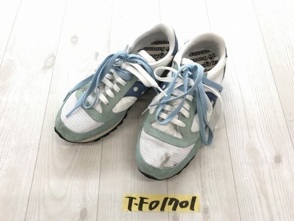 SAUCONY サッカニー レディース スエード メッシュ シューズ 38 ミントブルー です。