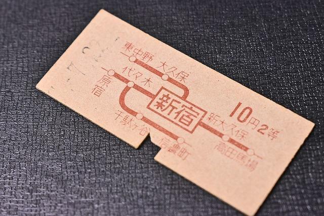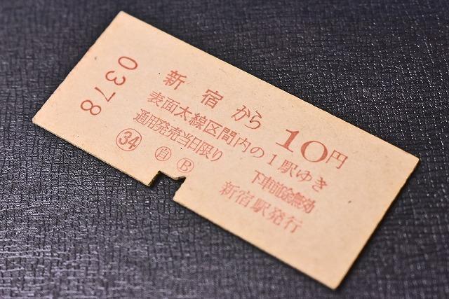 切符★硬券★国鉄★新宿から10円区間 ★ 2等 乗車券 ★ 0378★t12