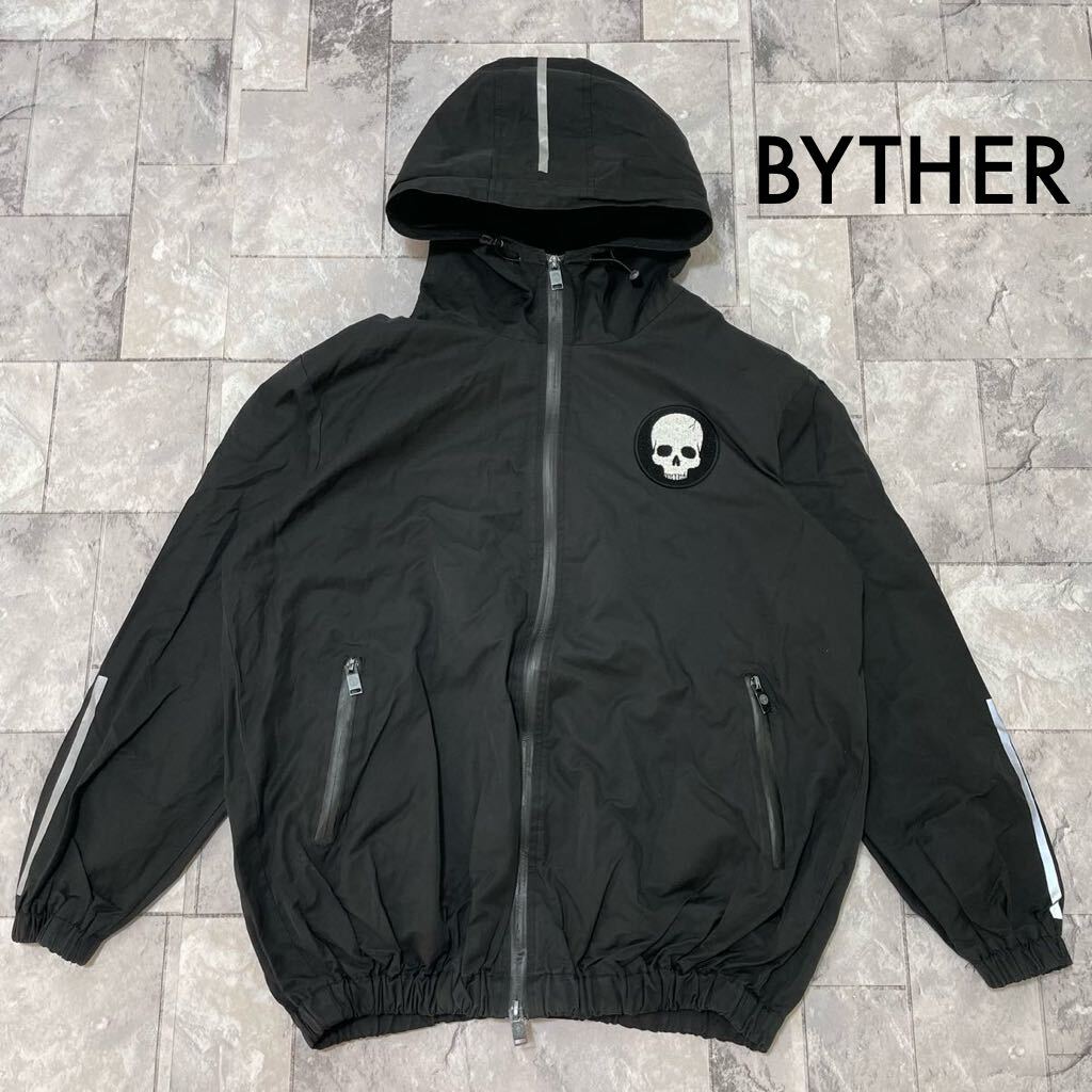 BYTHER バイザアール ナイロンジャケット パーカー ジップアップ 韓国ブランド マウンテン ワッペンロゴ パーカー ブラック 玉SS1548