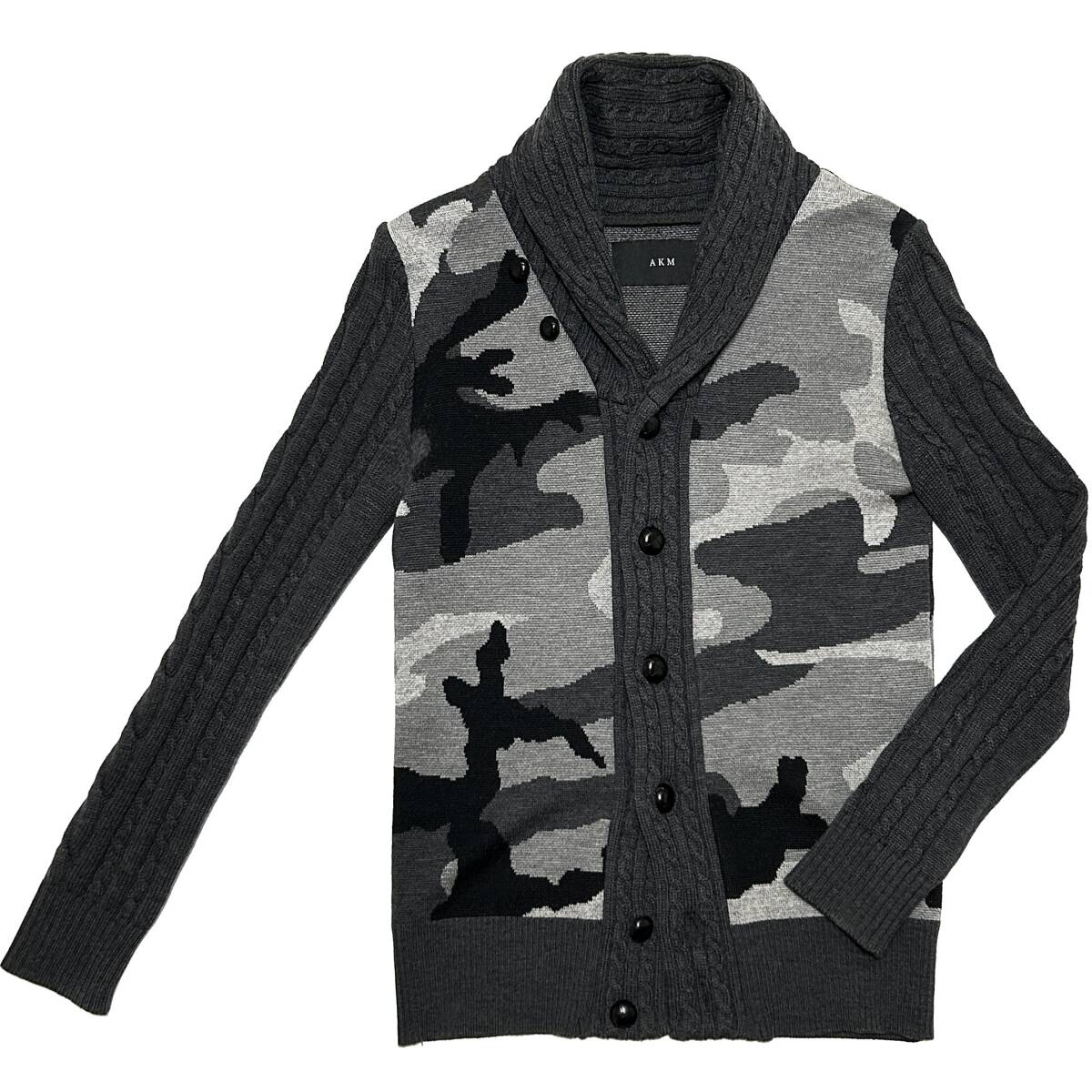 定価6.6万 AKM ZEGNA BARUFFA CASHWOOL CABLE SHAWL CAMO CARDIGAN サイズS グレー ショールカラーカーディガン wjk 1piu ジュンハシモト