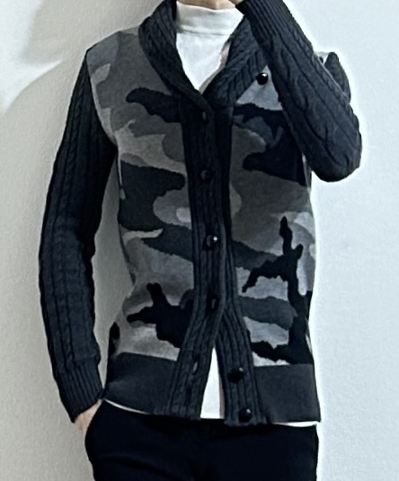 AKM ZEGNA BARUFFA CASHWOOL CABLE SHAWL CAMO CARDIGAN