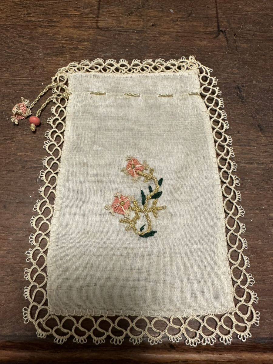 トルコのオヤ刺繍サシェです。素材はシルク。サイズは縦20センチ、横14センチ(オヤ部分含む)ポプリなど入れたり、通帳など大事な物を入れるそうです。鎌倉のお店で購入しましたが、違うデザインをいただいたので、使っていただける方にお譲りします。