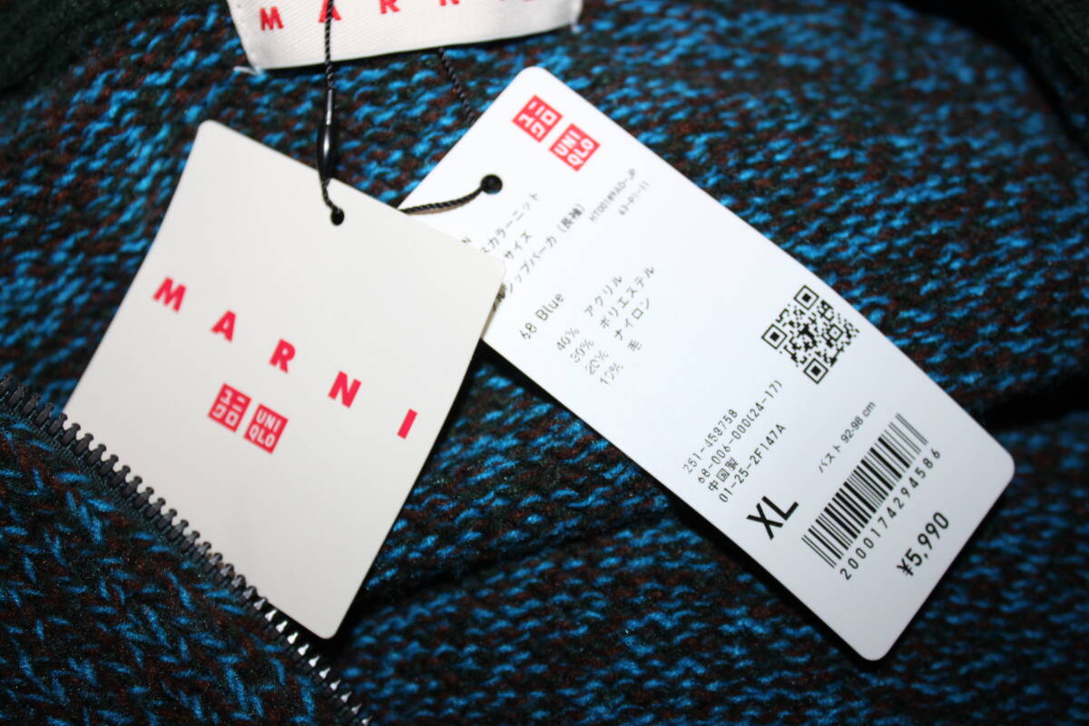 新品!ユニクロ&マルニ ミックスカラーニットオーバーサイズ フルジップパーカ XL ブルー 定価5990円