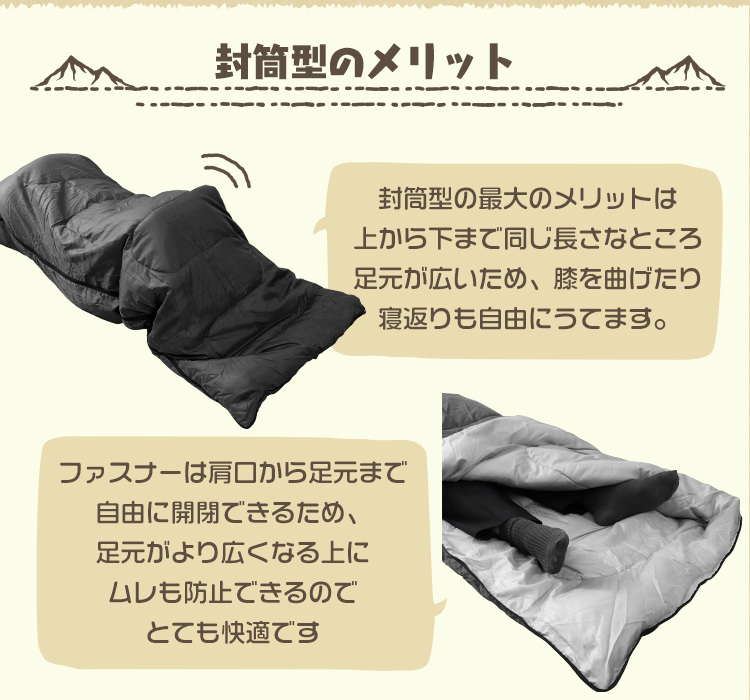アウトドア・キャンプ・登山はもちろん、ツーリング、車中宿泊等 さまざまなシーンでご利用いただける封筒型シュラフ(寝袋)です! 封筒型シュラフは布団を2枚重ねたような形状。 寝返りも打てる、ゆったりとした寝心地が特徴です。 地震や災害時には避難所でも疲れにくい封筒型が断然おすすめ! 収納に便利な圧縮ケース付!! 快適温度:25~8℃(使用限界温度:-4℃) ■商品コード:ODSBPS7KH ■商品仕様 カラー:カーキ サイズ:(約)縦220cm×横71cm 収納サイズ:(約)26cm×44cm 重さ:(約)1300g ■注意事項 ・商品はモニターによって色合いが異なって見える場合があります ・仕様/デザインは改良のため予告なく変更することがあります ■保障期間 7日間 ※商品到着後7日以内の初期不良・破損のみご対応させていただきます。 【もちろん新品未使用品です】 |