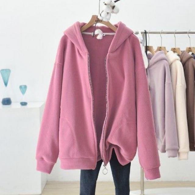 パーカー レディース 裏ボア 厚手 ジップ スウェット アウター 防寒 フード付き トップス 秋 冬 ピンク 4XL