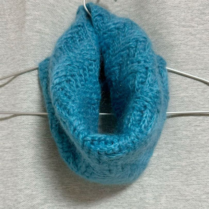 商品名 : SHAYA Sans Arcidet Collection スカイブルーネックウォーマー 毛糸 編み模様 水色 ヴィヴッド 差し色