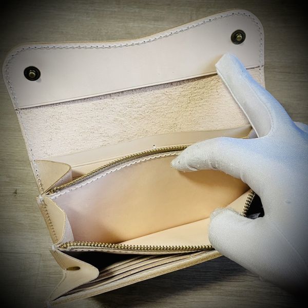 革は肉厚のあるヌメ革ですが程よい硬さで