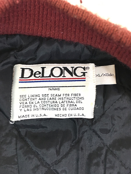 厚手メルトンウール素材・裏地中綿入りキルティング・袖“DeLONG”ロゴ入りビニールレザー。