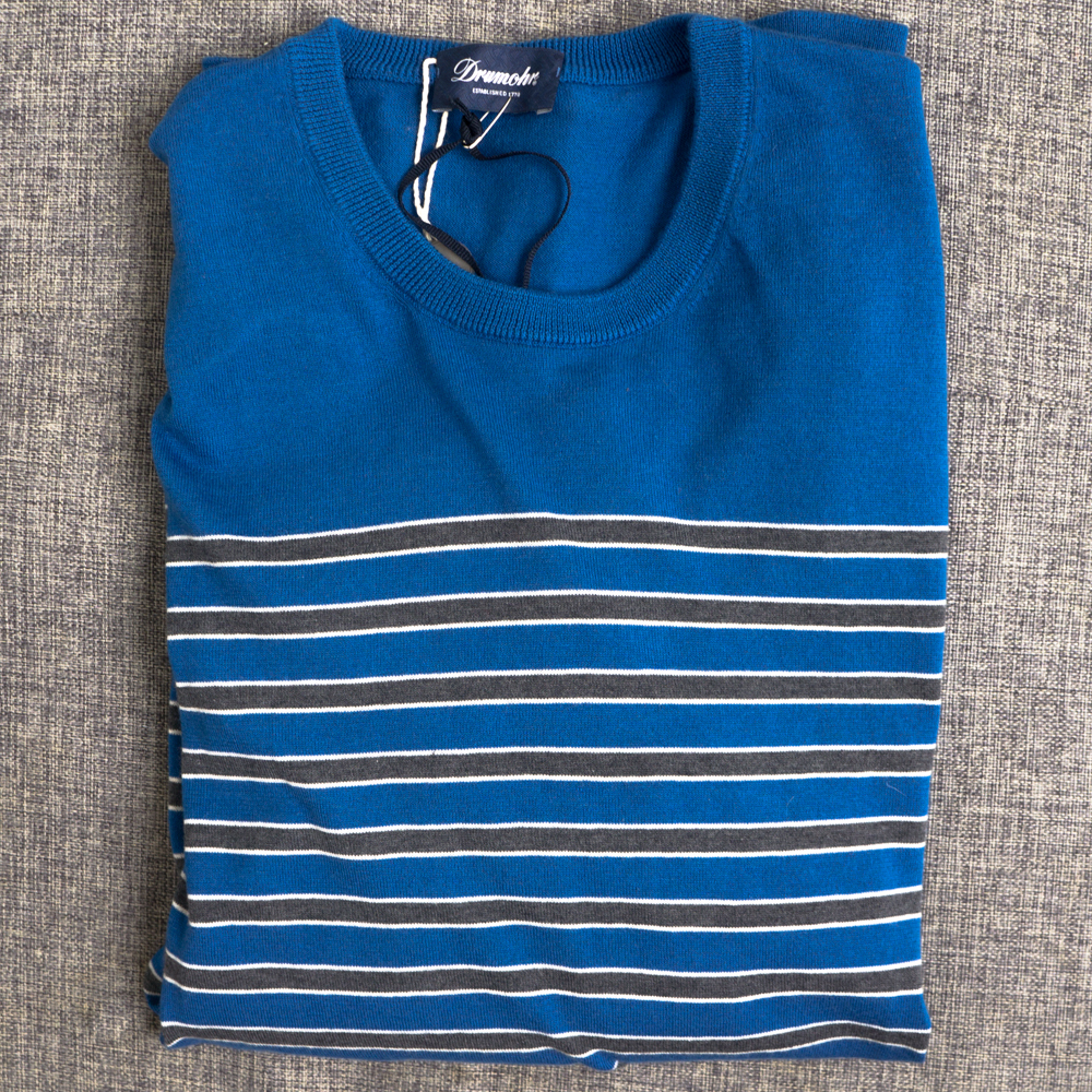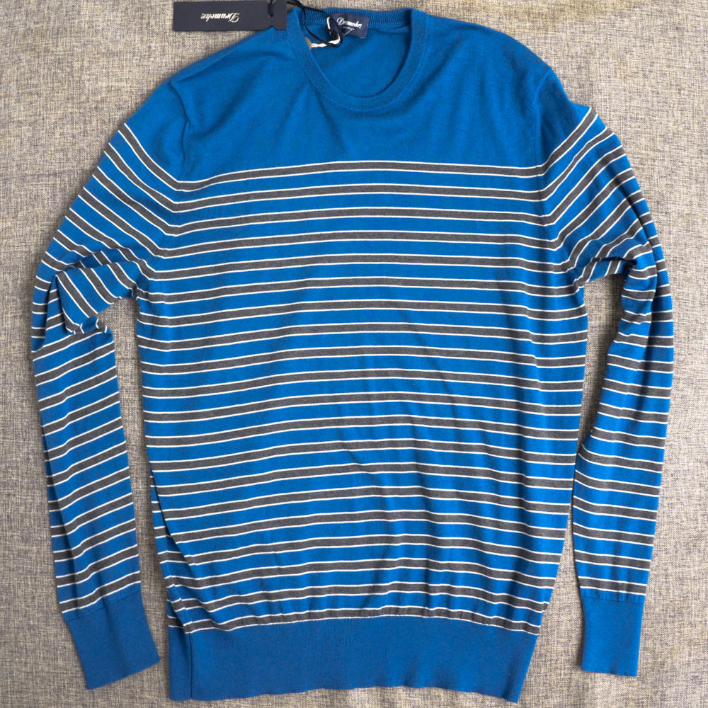 新品★ DRUMOHR ハイゲージ コットン カシミヤ クルーネック ボーダー ニット 48 送料無料 メンズ カシミア イタリア製 ドルモア