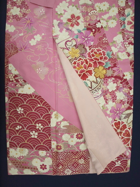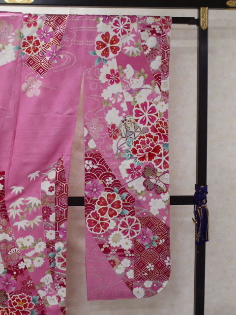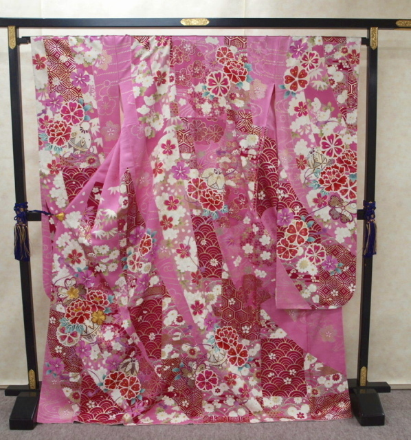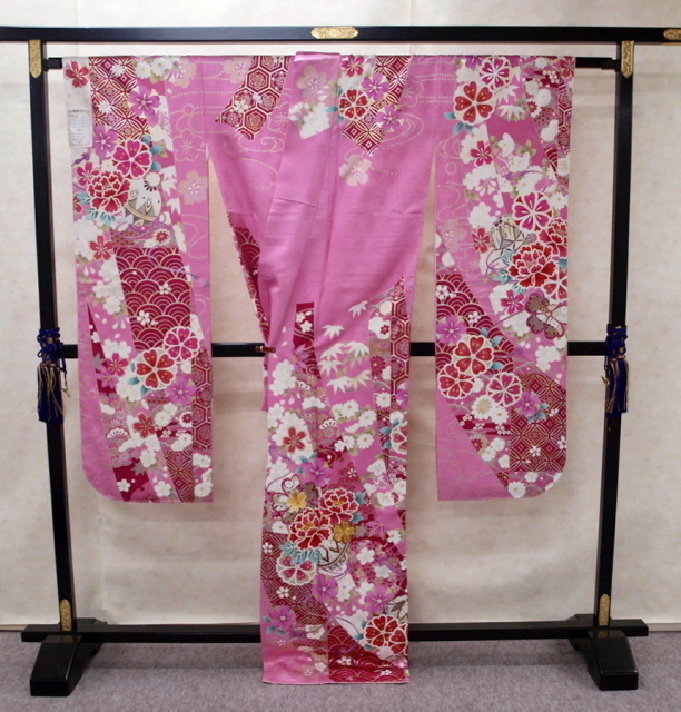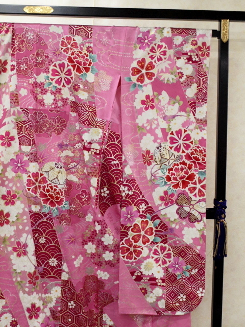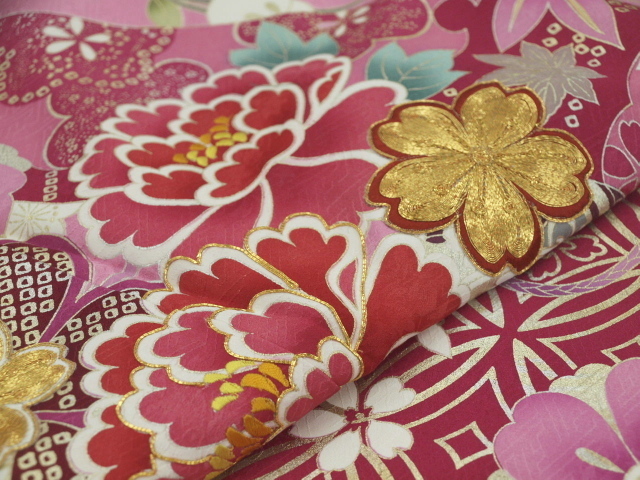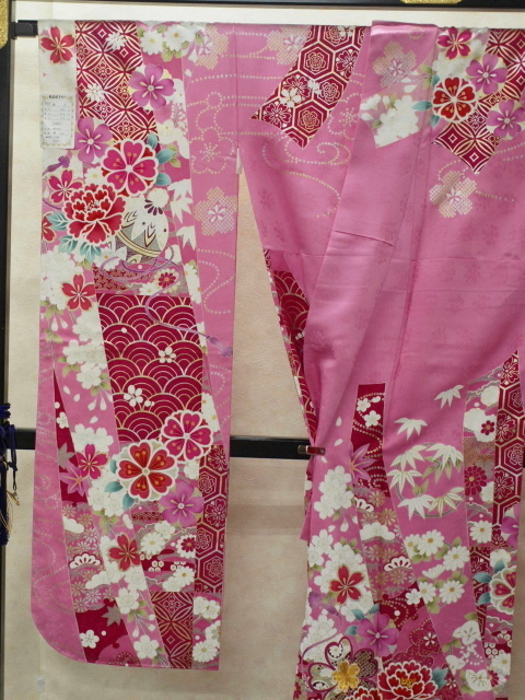 ピンク色の綸子(紗綾柄地紋)に四季草花をあしらった上品な振袖です成人式、パーティ、卒業式などにも素敵です。お買い得価格振袖!御仕立て上がりだからすぐに着られて便利!<素材>表地:絹100% 裏地:絹100% 八掛け:絹100%<御仕立て上がりサイズ>身丈165cm 裄68cm 袖丈114cm 前幅24cm 後幅30cm<発送>100cm以内で納品させていただきます*お電話でのご注文も受け付けています。TEL03-3663-7071*ご覧になりたい方は御連絡の上ご来店ください*店舗・オークションにも出品していますので先に売り切れてしまうことがございますのでその時はご連絡させていただきます。*送料無料!オークション入力時に送料が発生しますが後程削除させていただきます<発送・問い合わせ>土曜・日曜・祝日を除く10時~17時