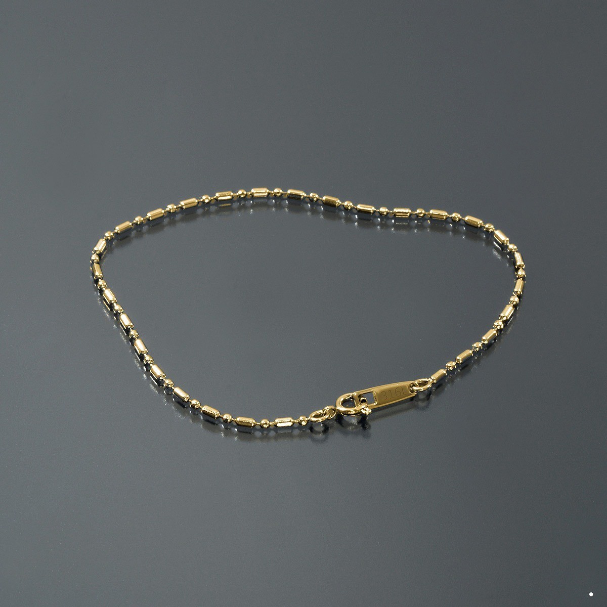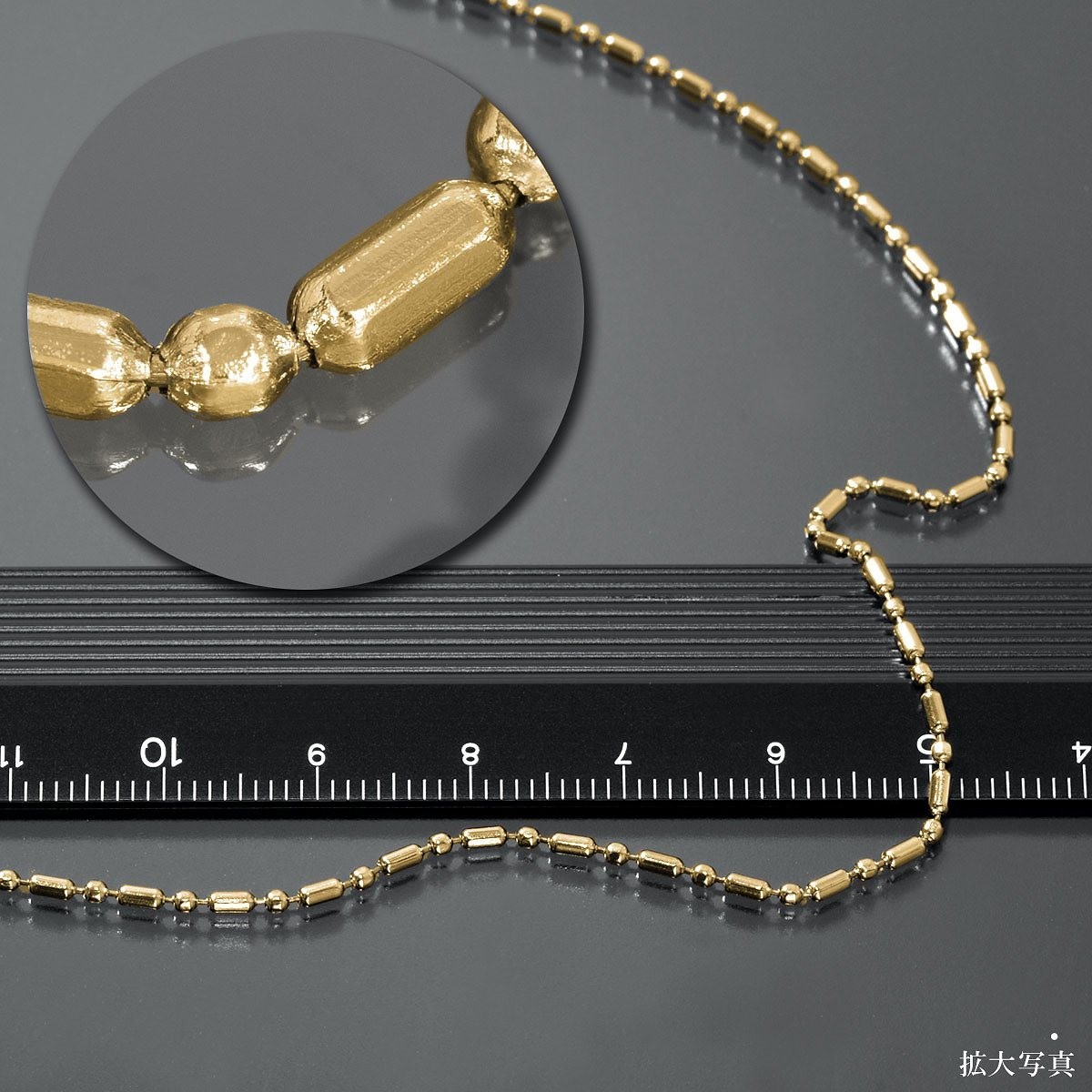 | 変形カットボールチェーンは俵型のバーとボールが交互に連なった変形ボールチェーンにカットを入れたブレスレットです。棒と球のパーツが連なるので(BAR×ROUND)、BRチェーンと商品名に付いております。 ※こちらのチェーンは絡まりにくく万が一絡まってしまったとしても解きやすいデザインです。 ※イオンプレーティング(IPメッキ)とは、金属イオンと不活性ガスを反応させた化合物を製品に蒸着させるコーティングで、ガスの比率でカラーを調整します。従来の鍍金加工に比べて表面耐久性、密着性、工程の安全性が飛躍的に向上しております。 |