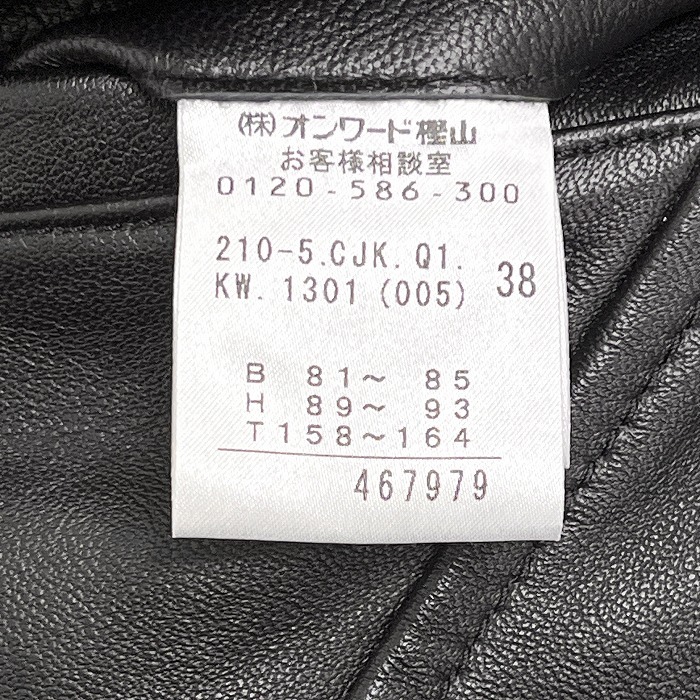 | 商品タイトル | ニジュウサンク 23区 ライダースジャケット シングル 裏地付き 無地 長袖 羊革 レザー 本革 38(B81-85/H89-93/T158-164) 黒 レディース |