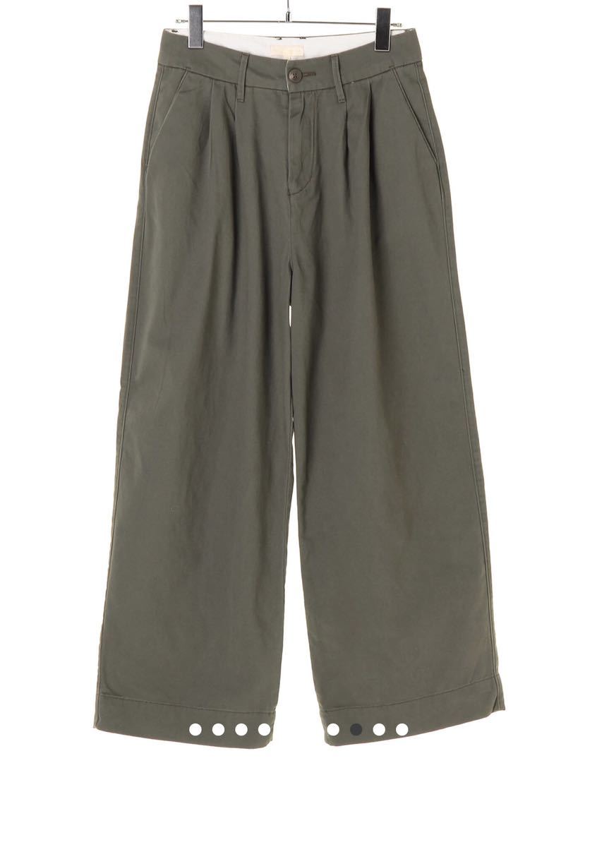 「さらりとした肌触りの綿100%チノ生地で仕立てた、大人レディなパンツ。タックを効かせることで腰回りにもゆとりが生まれ、ラインを拾わないすっきりとしたワイドシルエットで穿き心地もノンストレス◎ワンカラーのベーシックなルックスでコーディネートに取り入れやすく、デイリーに幅広く活躍してくれるアイテムです。」
