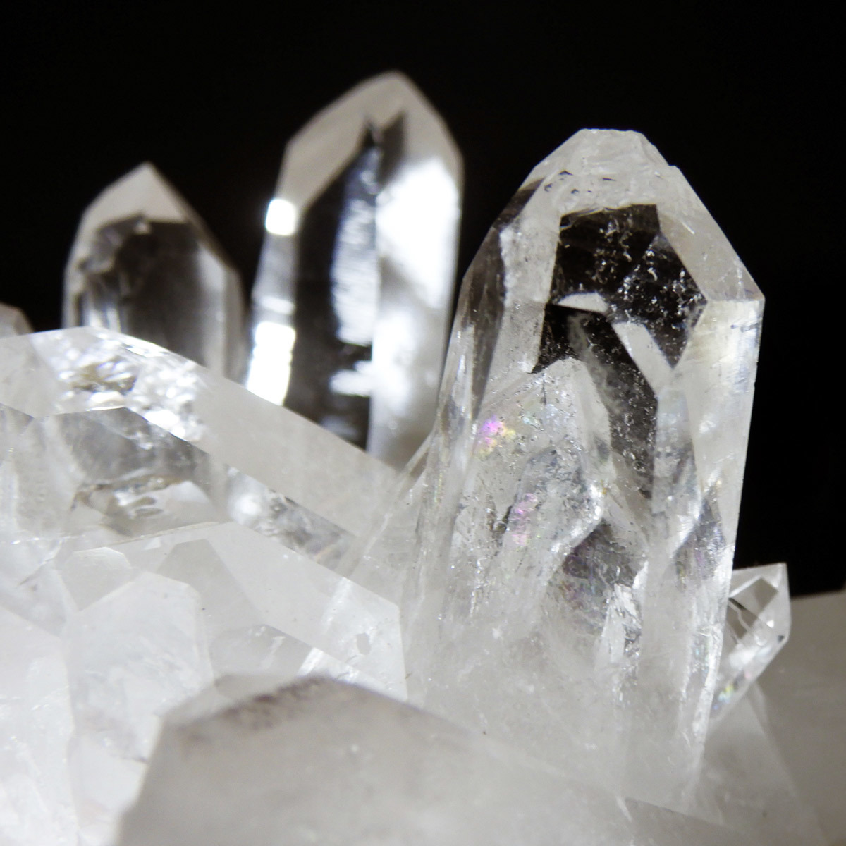 【水晶】すべてのパワーストーンの基本といわれる石です。生活空間にこのクラスターを置くとマイナスエネルギーを弾きとばして気の流れを正常化してくれます。パワーストーンのアクセサリーの浄化や美しい開運インテリアとして最適です。