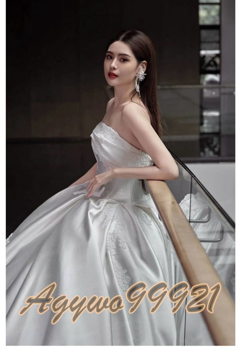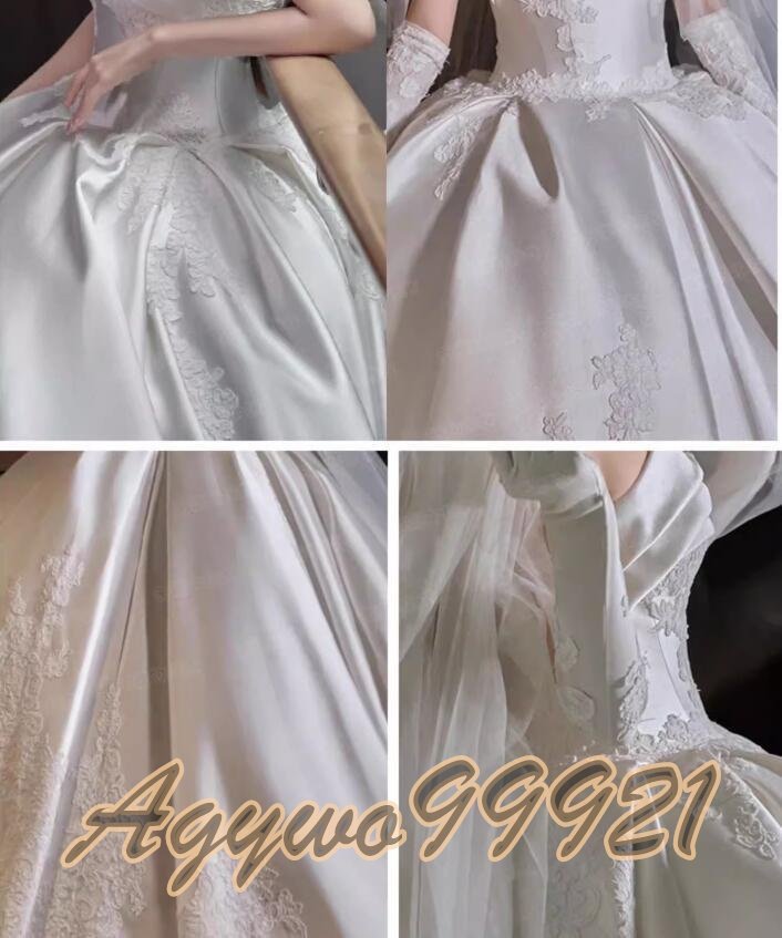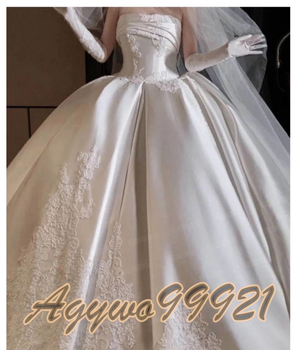新品未使用  【パニエグローブベール付】高級サテン生地 ウエディングドレス カラードレス 花嫁 結婚式 披露宴