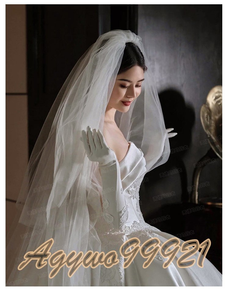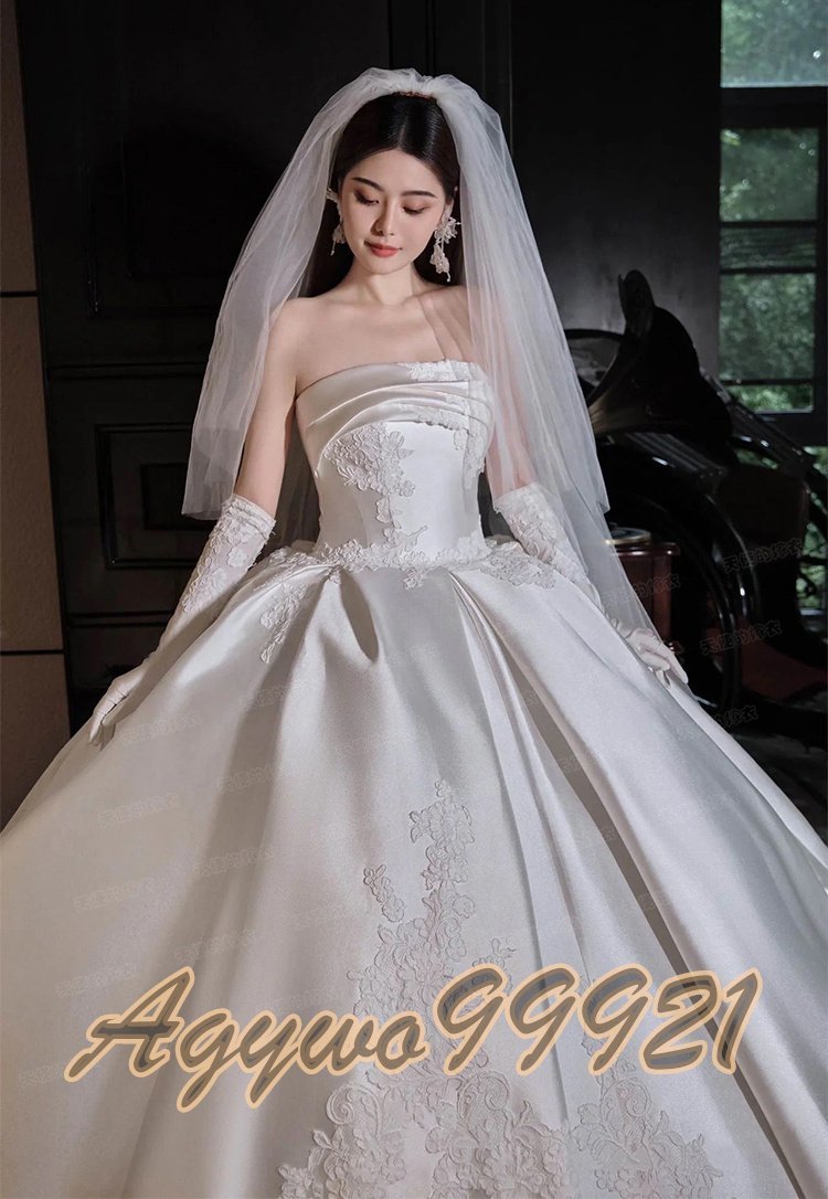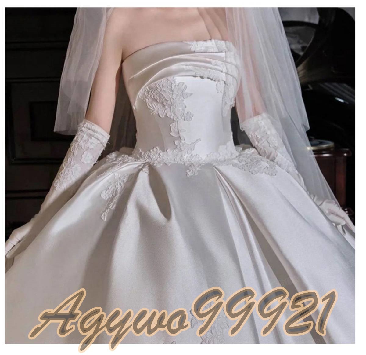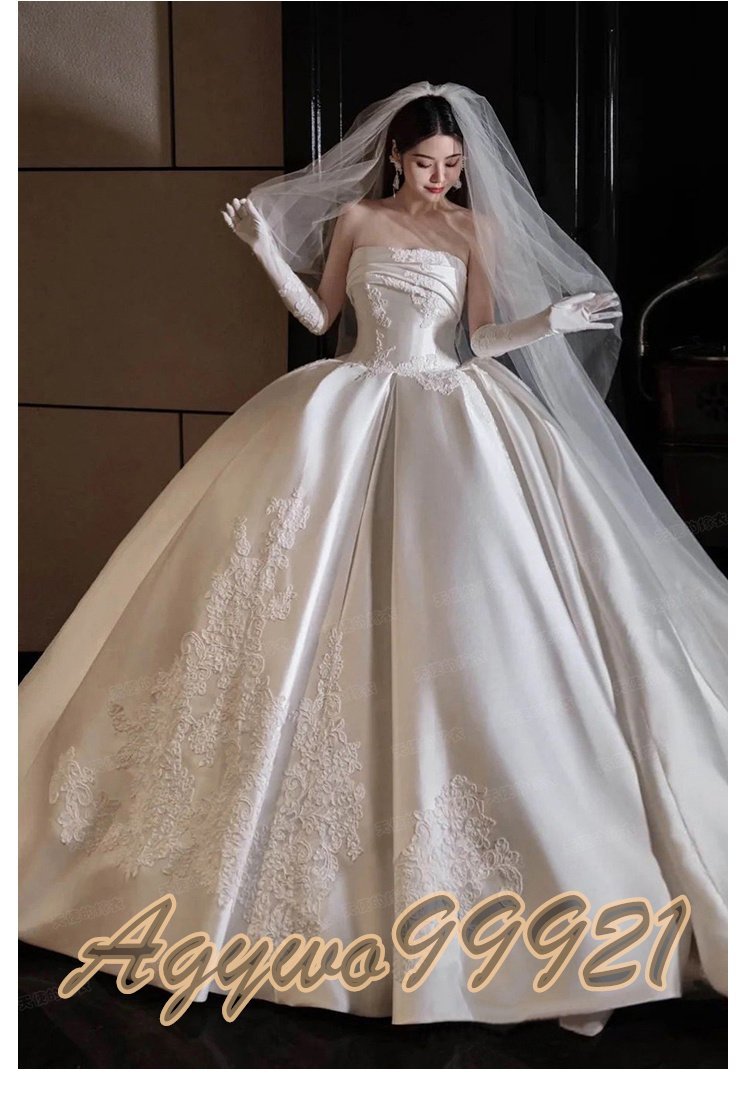 新品未使用  【パニエグローブベール付】高級サテン生地 ウエディングドレス カラードレス 花嫁 結婚式 披露宴