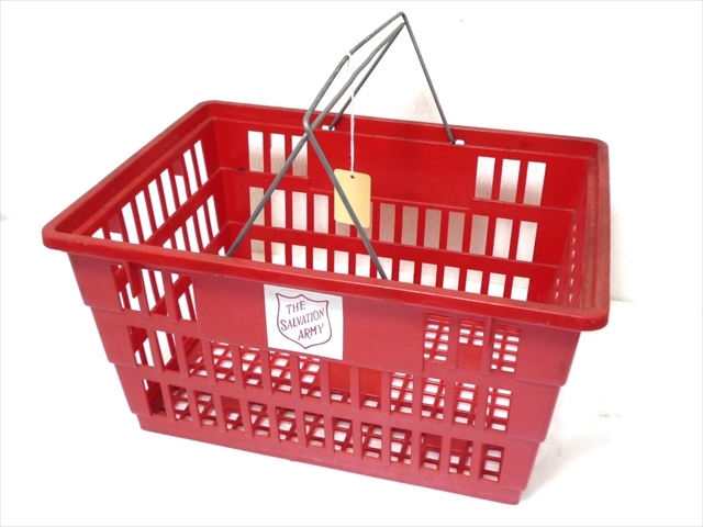 ビンテージ THE SALVATION ARMY ショッピングカゴ かご カナダ製 赤 サルベーションアーミー プラスチック製 ディスプレイ 収納 買物 レア
