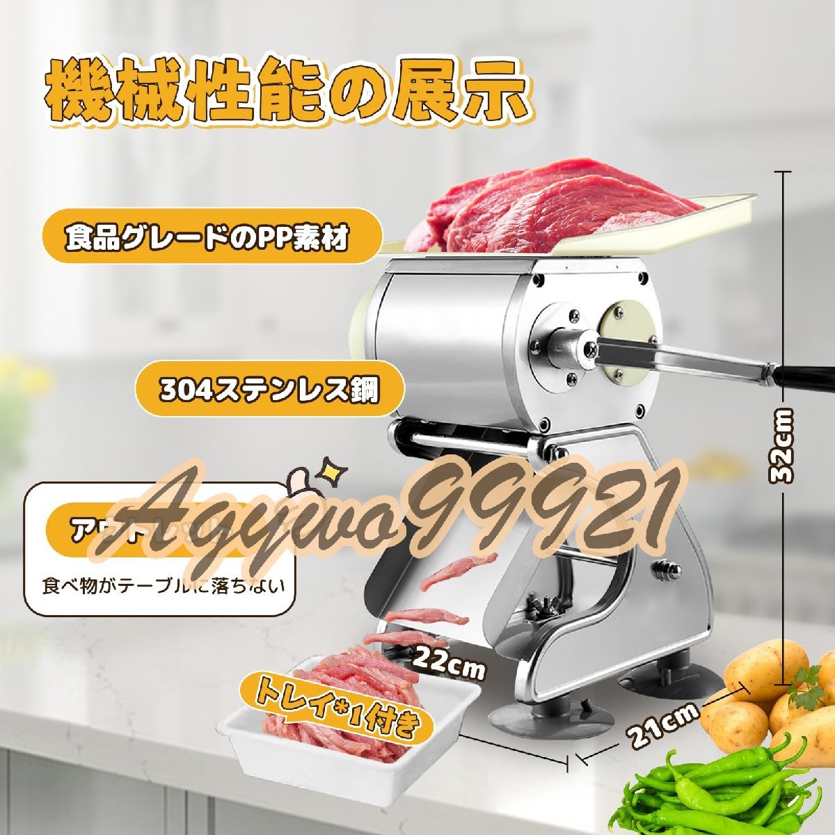 肉スライサー 手動式 60kg/hスライス量 一台3役 スライス/千切り/さいの目切り トレイ/ミートプレス付き ステンレス鋼鋸歯状ブレード