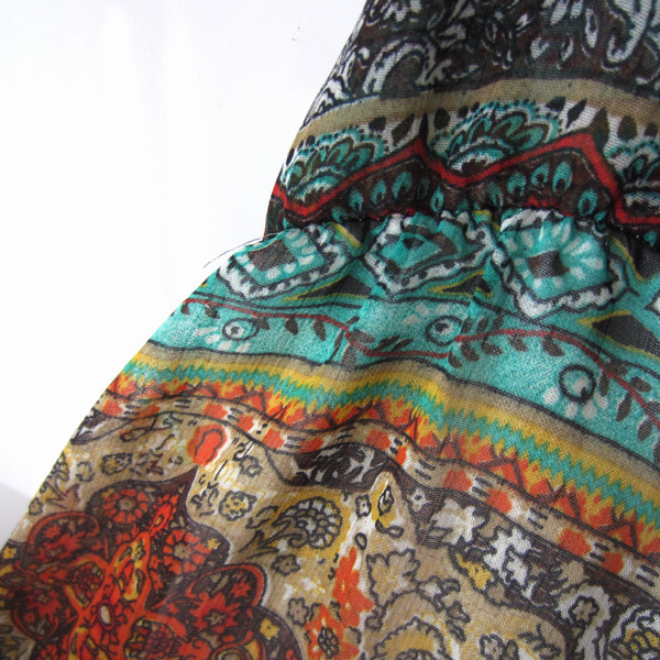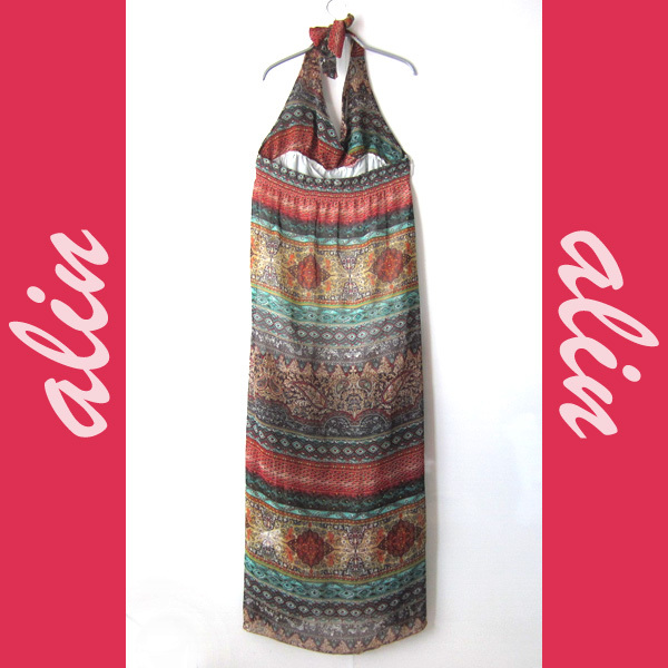 ほぼ新品 alin★ 総柄 薄手 首ひもロングワンピース 裏地付き