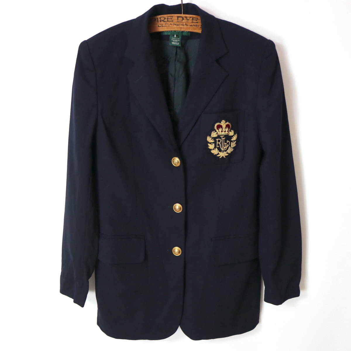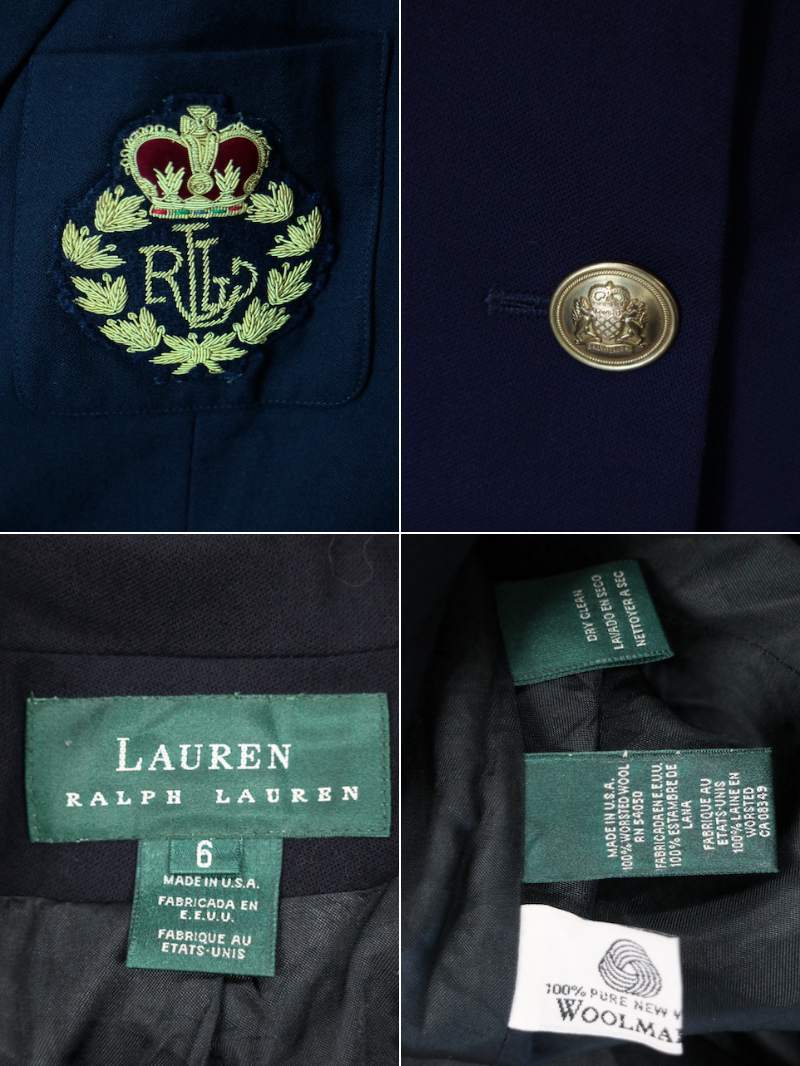 USA製 LAUREN RALPH LAUREN ラルフローレン ウール ブレザー(レディース 6)ネイビー
