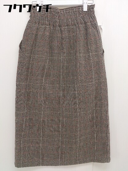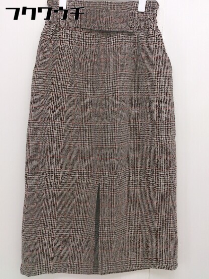 ◇ mystic チェック フロントスリット ロング タイト ニット スカート サイズ 2 ブラウン ホワイト マルチ レディース