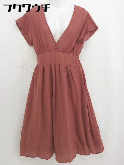 ◇ continuer de NICE CLAUP カシュクール 半袖 膝下丈 ワンピース サイズF テラコッタ系 レディース