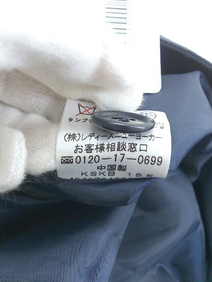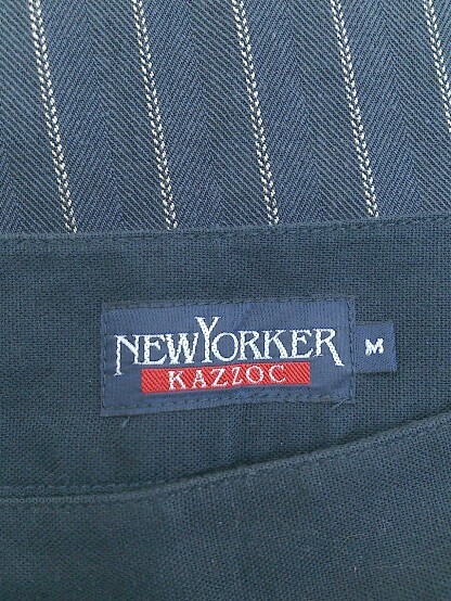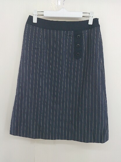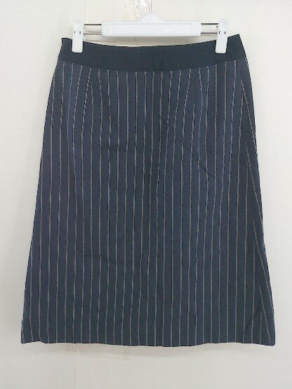 ◇ ◎ NEWYORKER ニューヨーカー リネン混 ストライプ 膝下丈 ナロー スカート サイズM ネイビー ホワイト系 レディース