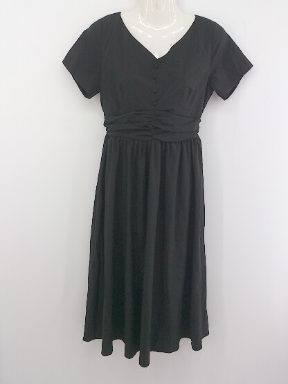 ◇ SPIRALGIRL スパイラルガール 半袖 膝下丈 ワンピース サイズF ブラック レディース P