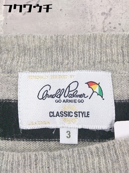 ◇ arnold palmer アーノルドパーマー ロゴ 刺繍 ウール ニット 長袖 セーター サイズ3 グレー マルチ レディース