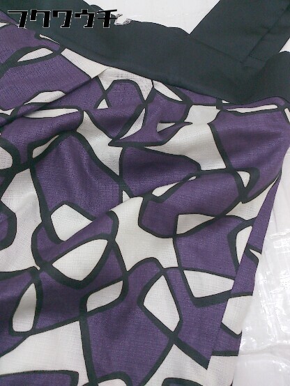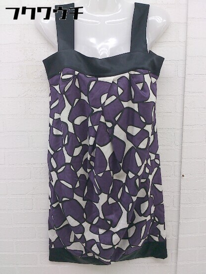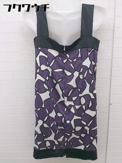 ◇ ◎ INED イネド 総柄 ノースリーブ ミニ ワンピース サイズ7 パープル ブラック ホワイト系 レディース