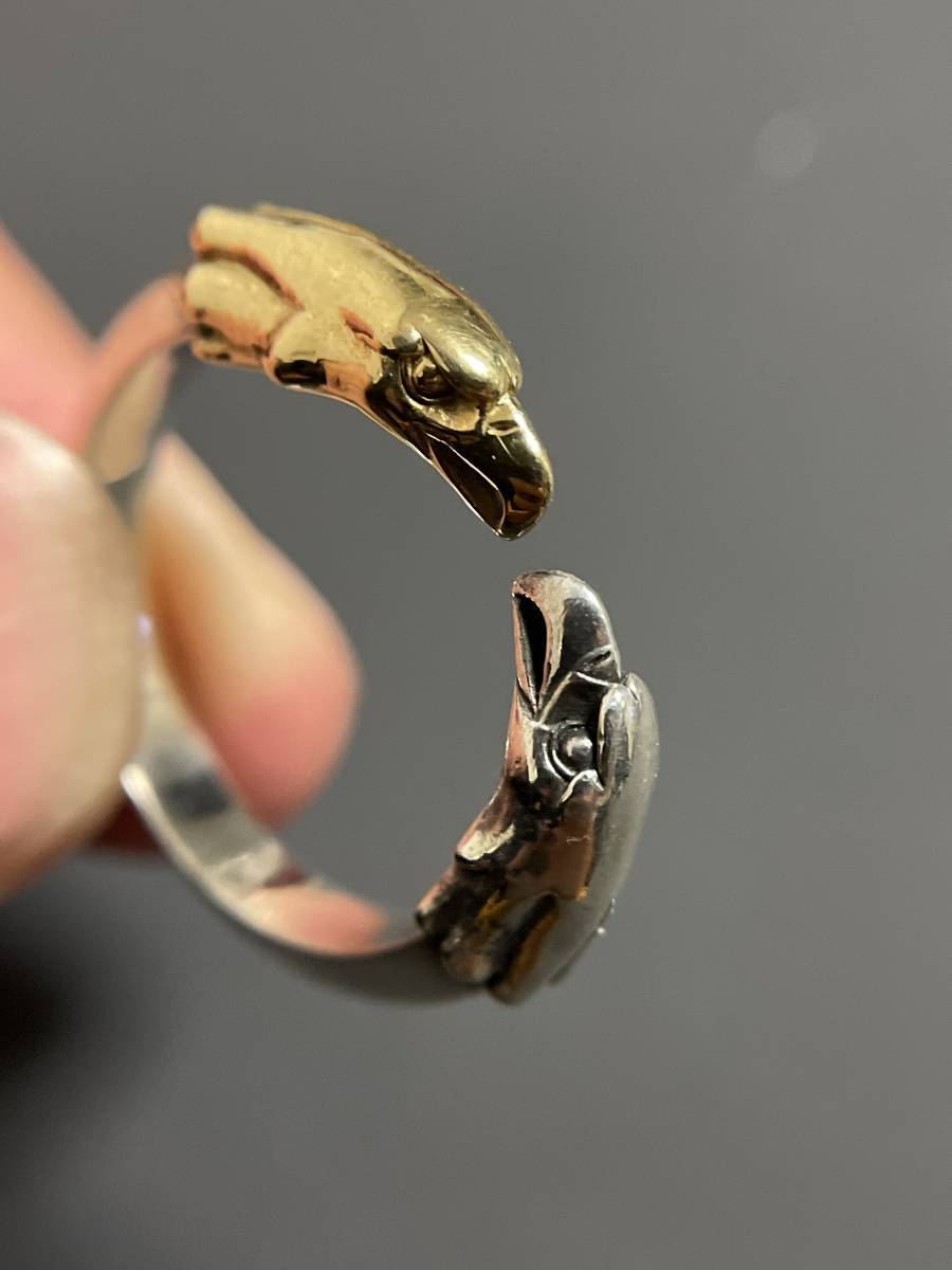 DOUBLE EAGLE HEAD RING (18K GOLD & SILVER)
