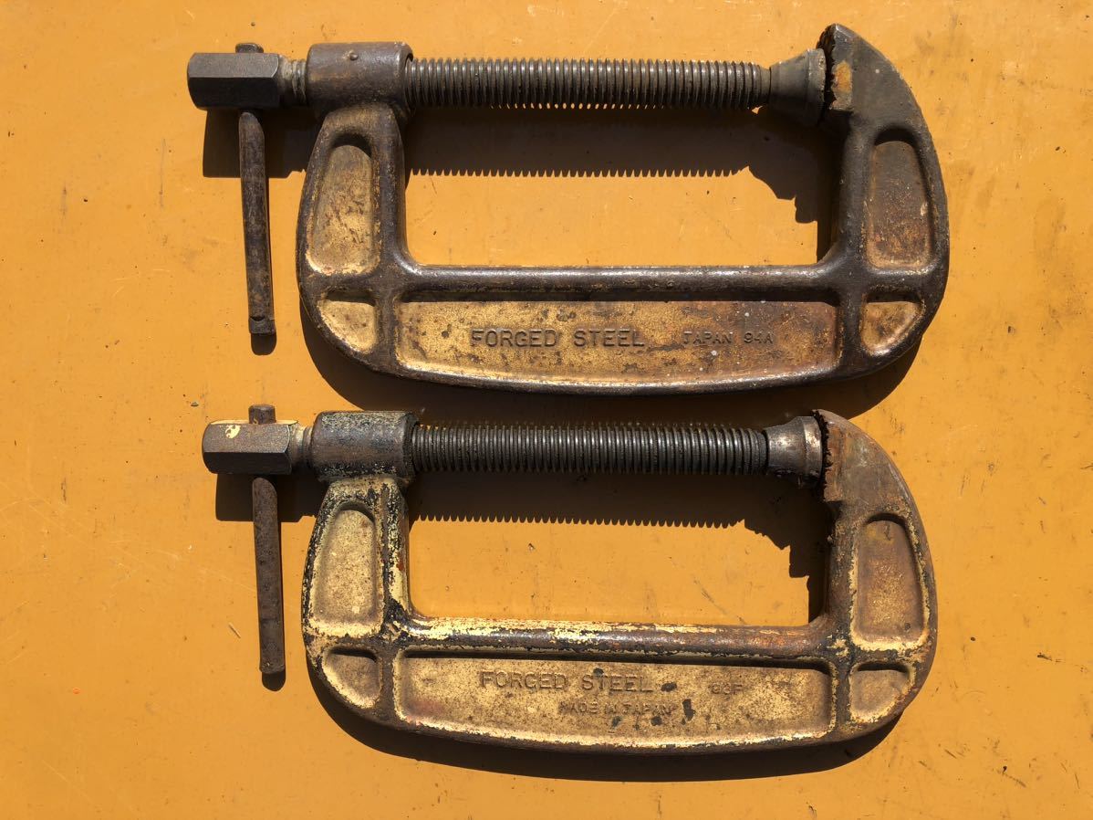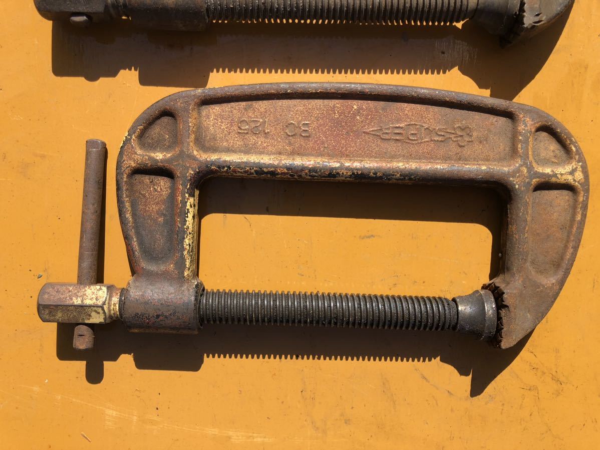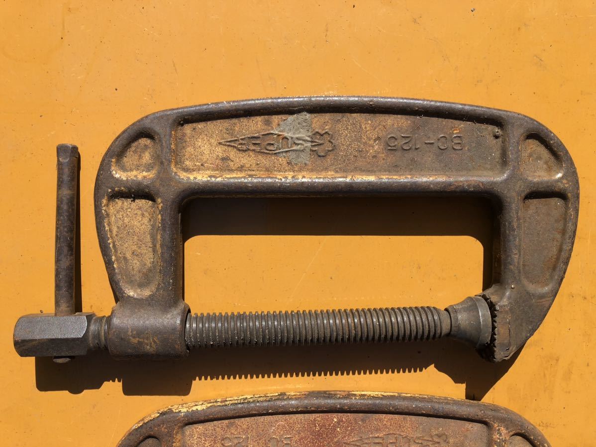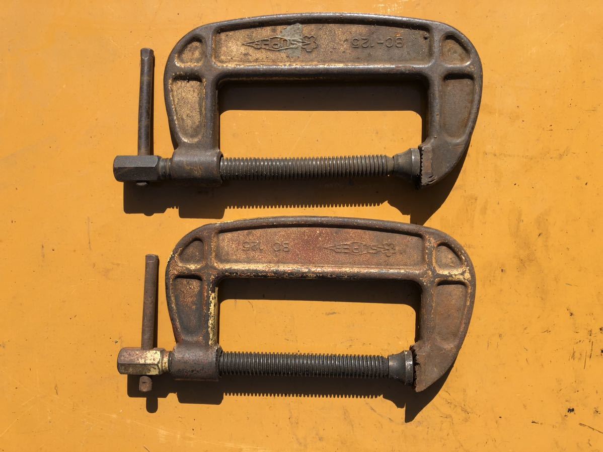 物置の整理から出てきました。シャコ型万力125mm 、2個セット出品です。スーパー2個です。写真を見て理解できる方のみ入札して下さい。3Nでお願いします。
