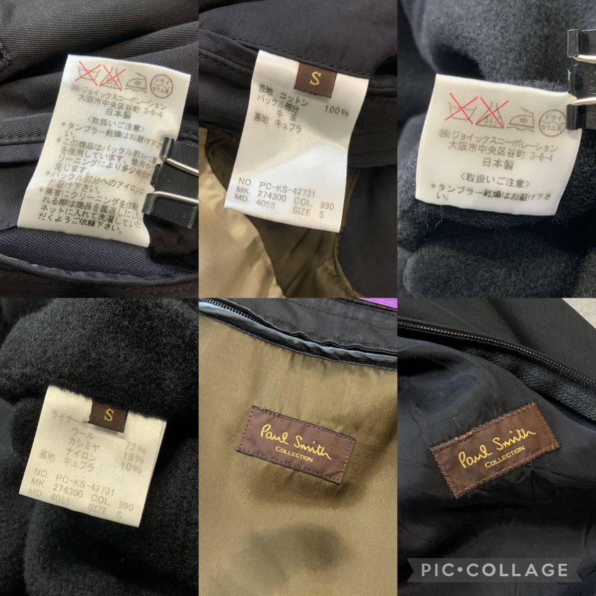 【高級ライン】Paul Smith collection ポールスミスコレクション ライナー付 トレンチコート メンズ Sサイズ ブラック