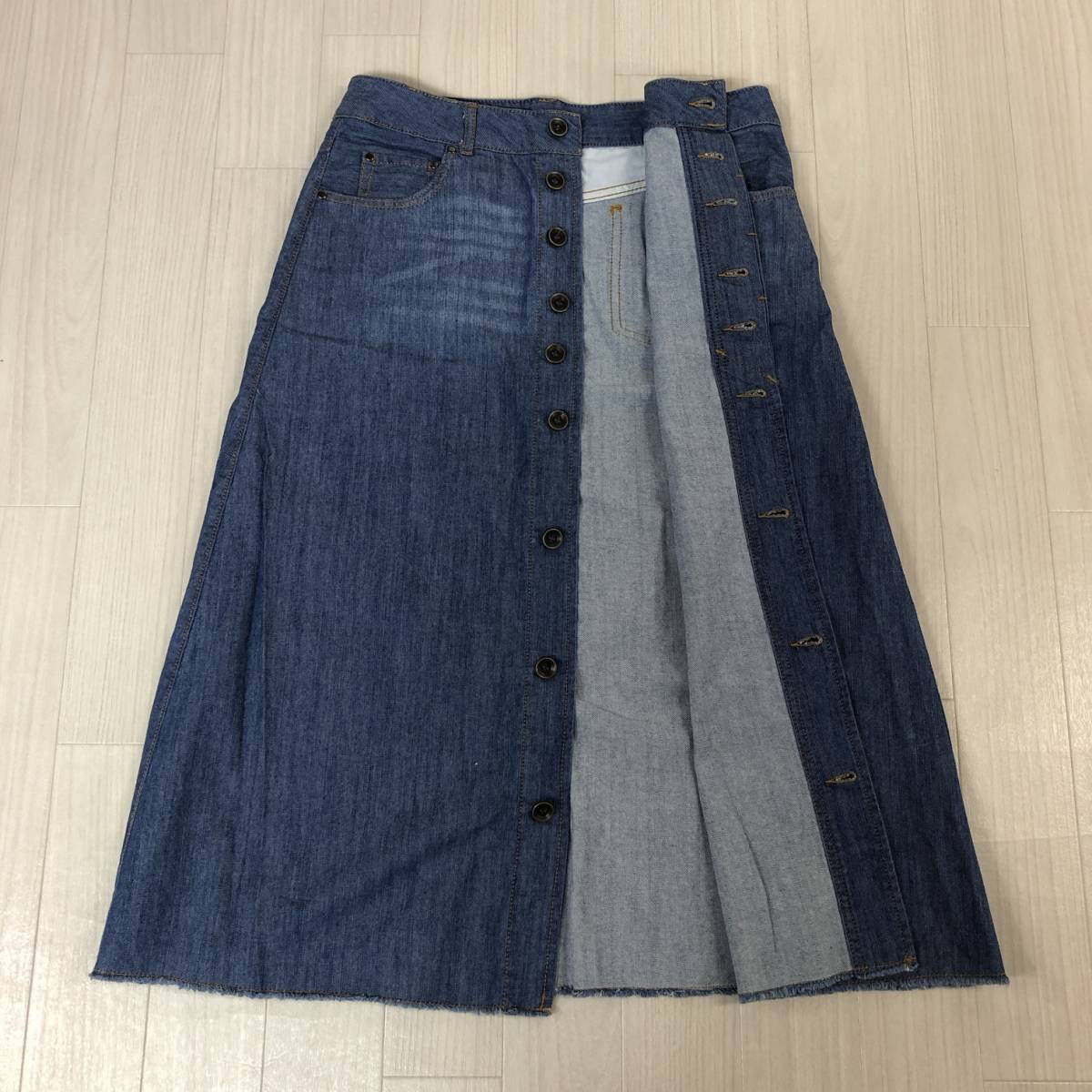 Y0601 タグ付 未使用 TWUING レディース ボトムス ロングスカート デニム ブルー 青 綿100% コットン 可愛い 春秋 カジュアルデニムコーデ