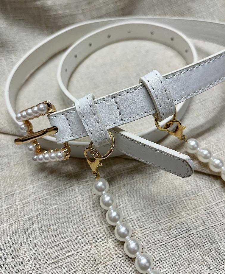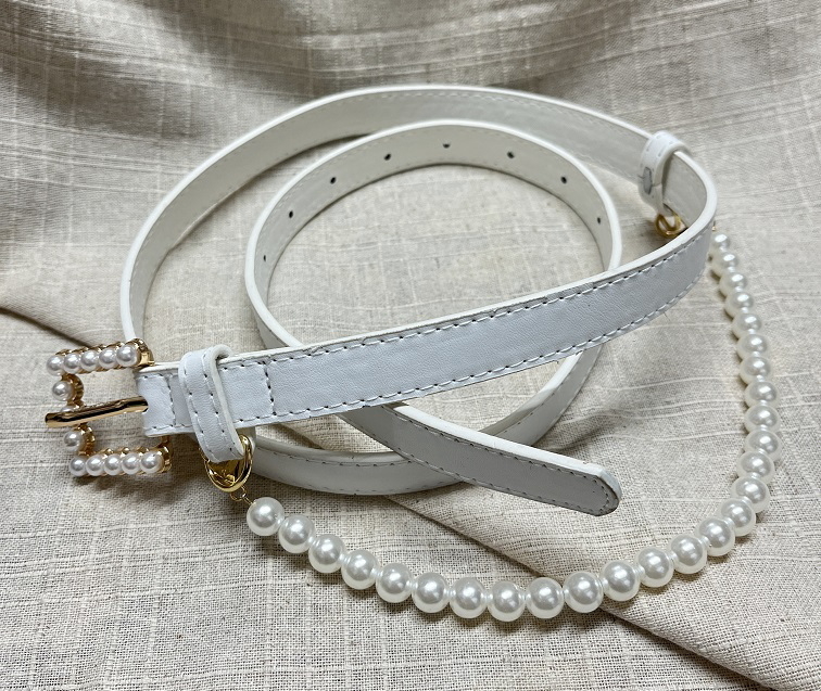 レディース 細ベルト パールチェーン 白 ホワイト ファッション スカート パンツ ワンピース ベルト 小物 衣装 コスプレ