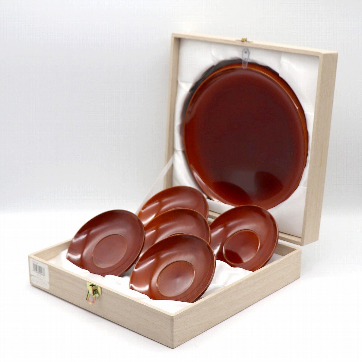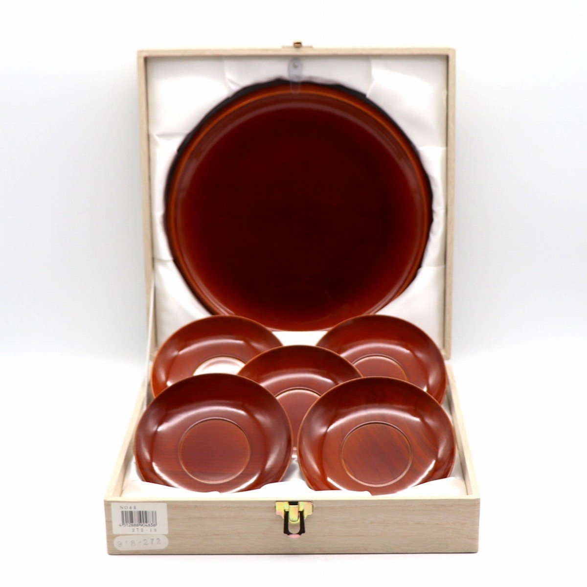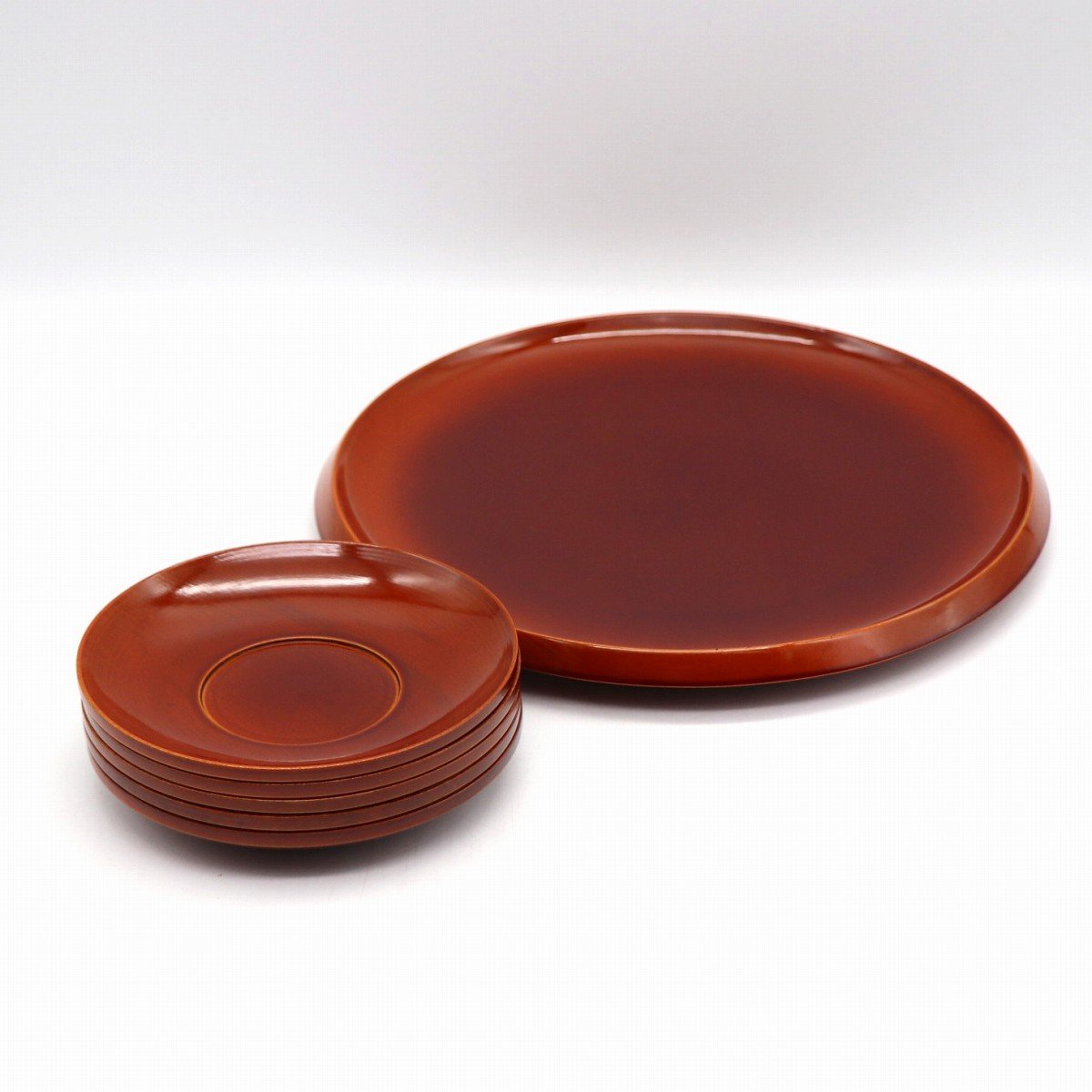 菓子器(直径:約233㎜、高さ:約20㎜)、茶托5客(直径:約122㎜、高さ:約17㎜)、状態ランク:A