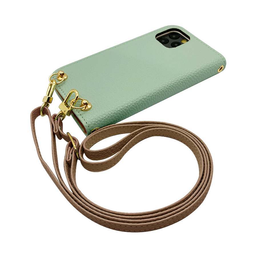 AQUOS sense4 plus スマホショルダー(手帳アイスグリーン×ストラップ:グレージュ)カバー 手帳 くすみカラー