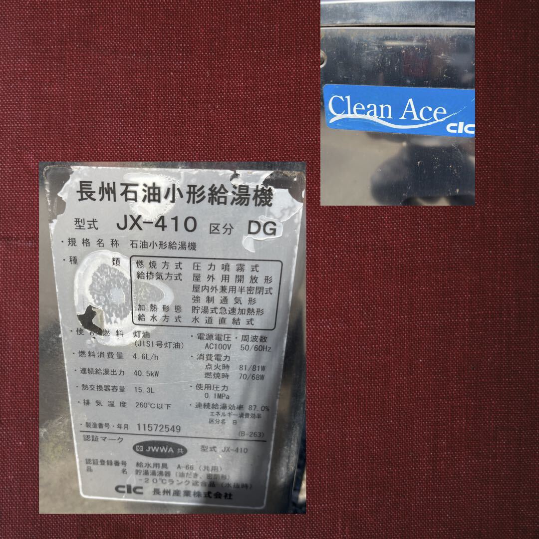 (中古品)CLEAN ACE 石油給湯器、JX-410 区分DG、2004年製。