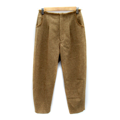 ルシェルブルー LE CIEL BLEU スラックスパンツ テーパードパンツ アンクル丈 フリンジ 36 ブラウン 茶 /SY13 レディース