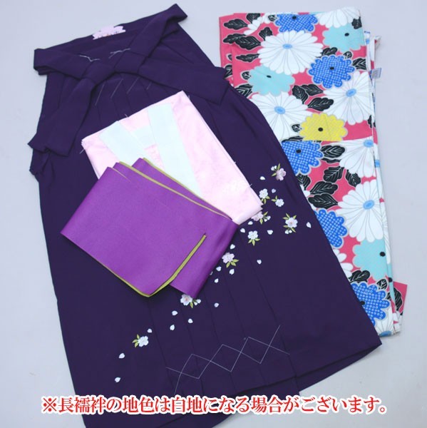 袴色変更可 | 袴色の変更が可能です。 (変更に伴う価格の変動はございません) ※袴の色指定が無い場合は、商品画像1枚目で使用している袴の色でご用意させていただきます ※ご変更をご要望のお客様は、「フォーム備考欄」「メール(aji_net@khaki.plala.or.jp)」「お電話」「FAX」いずれかの方法でご連絡ください。 ※異なる刺繍柄やぼかし袴に変更の場合は価格が異なる場合がございますので その場合はご相談下さい。 |