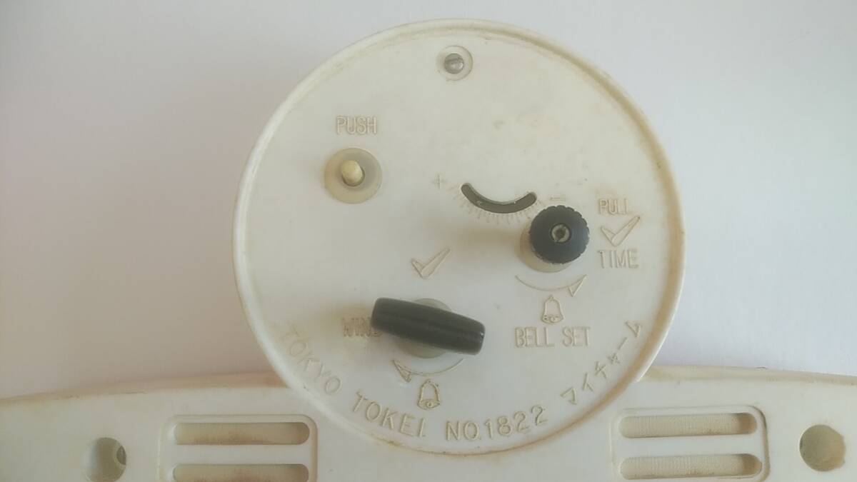 また、ベルは故障しています。(ベルの針が短針に重なってもベルは鳴らず、またベルを止めるスイッチを解除したら針の位置に関係なくずーっと鳴りっぱなしになります。)
